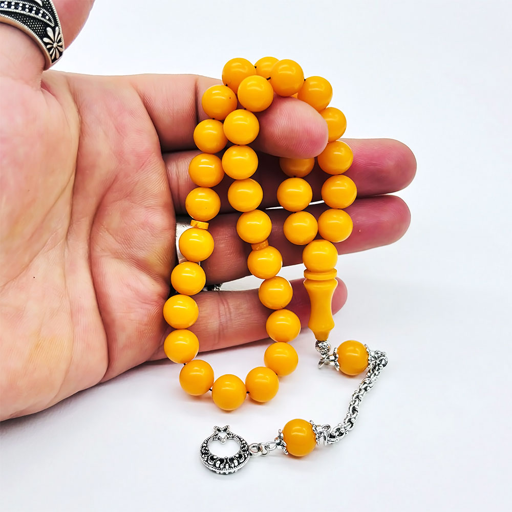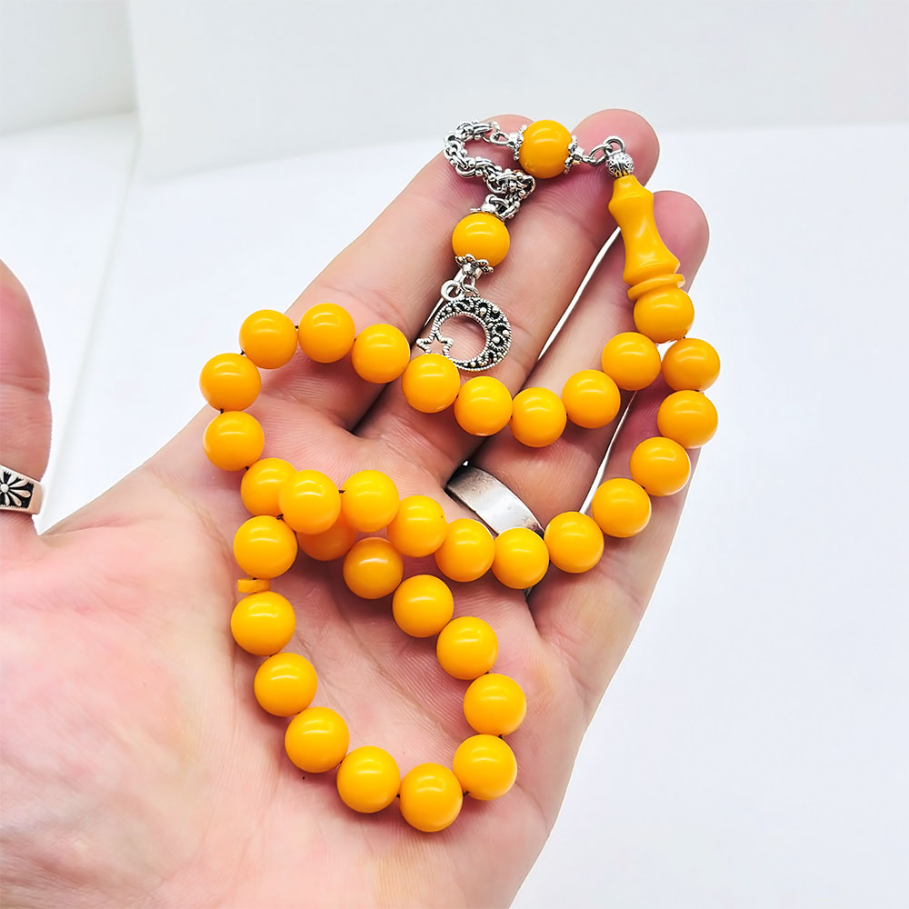 Mat Sarı Renkte Sıkma Ateş Kehribar Tesbih