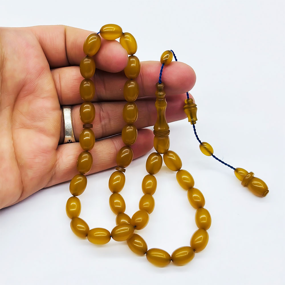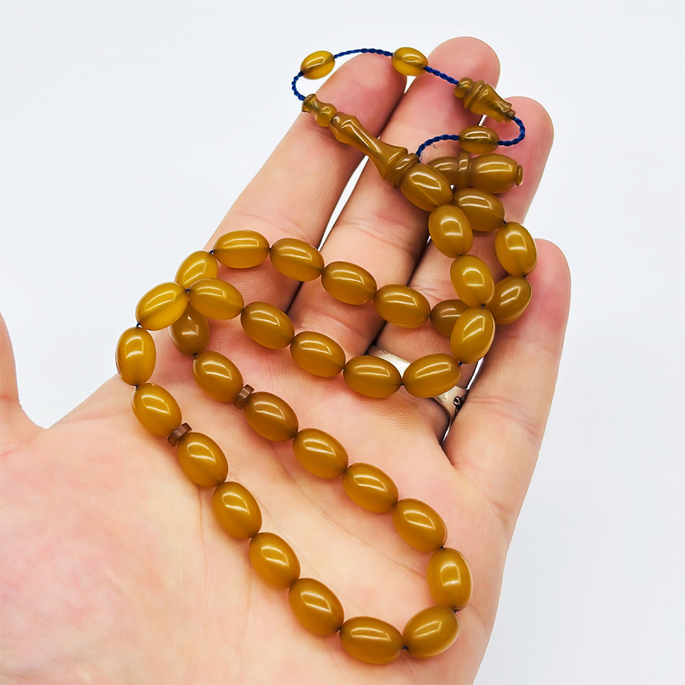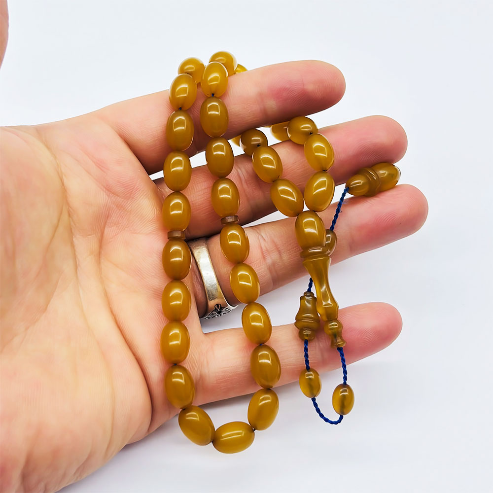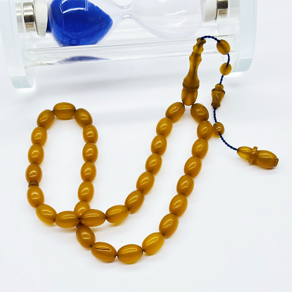 Mat Sarı Renkte Sıkma Ateş Kehribar Tesbih