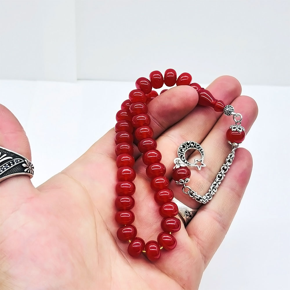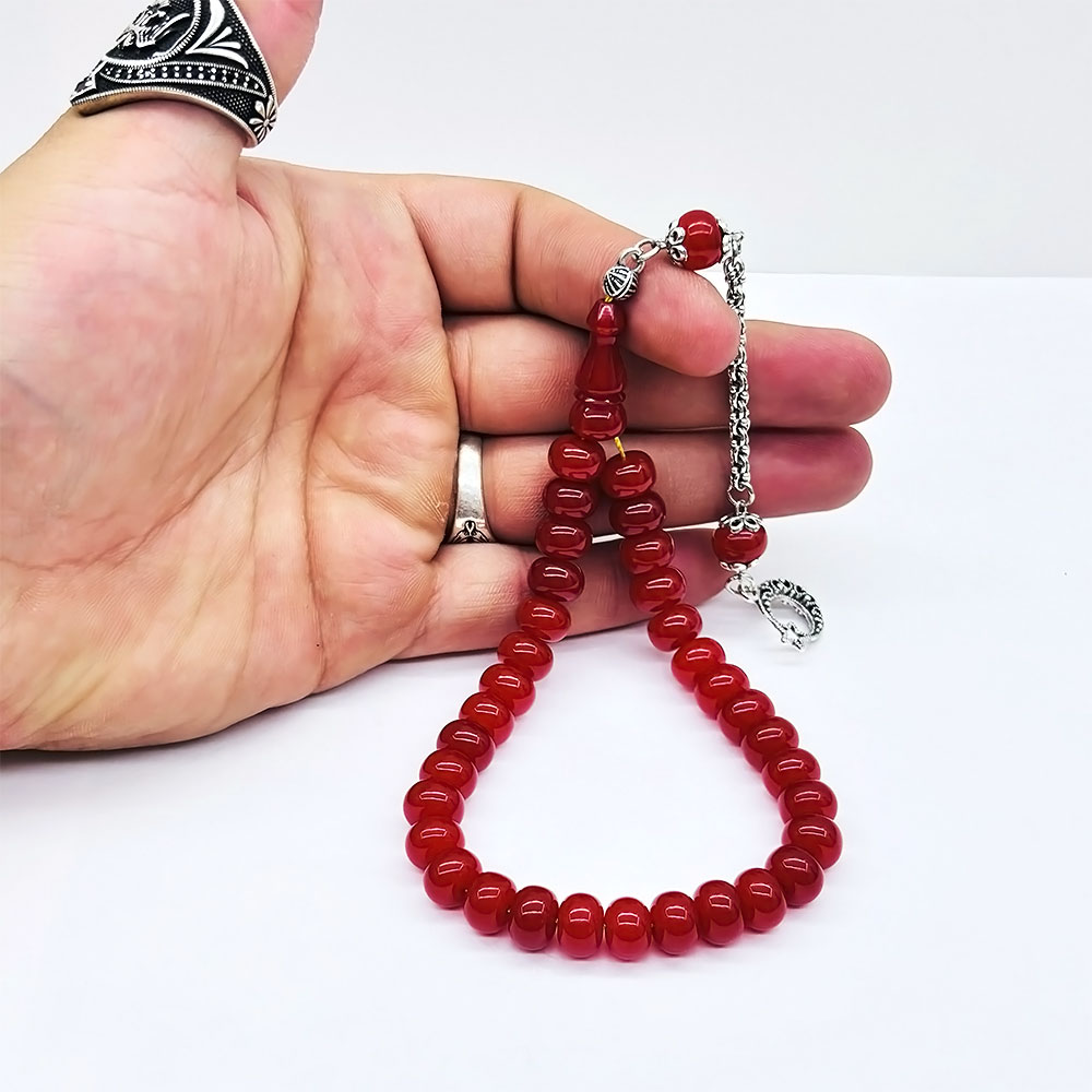 Koyu Tonda Basık Model Sıkma Ateş Kehribar Tesbih
