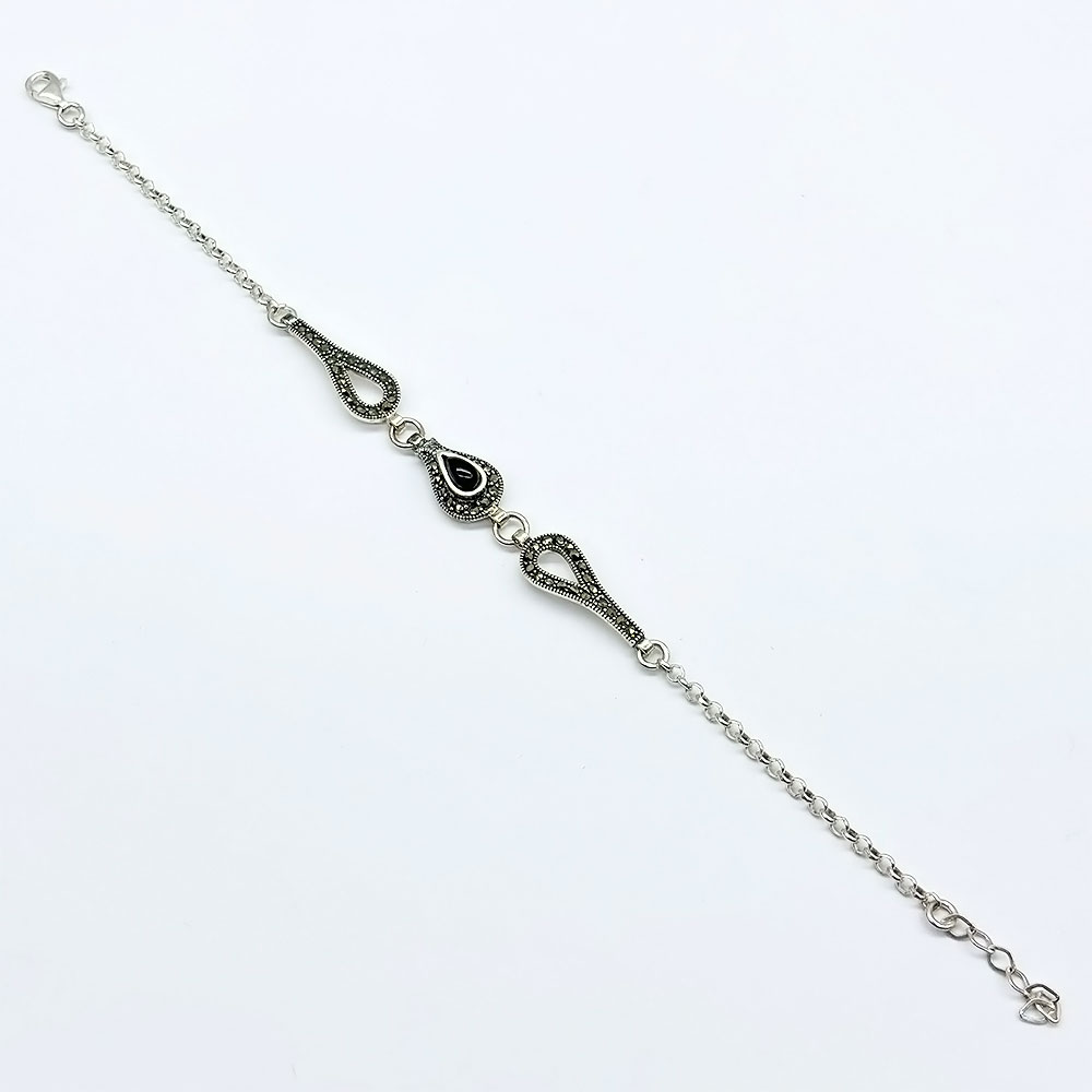 Lale Model Oltu Taşı İşçilikli 925 Ayar Gümüş Bileklik