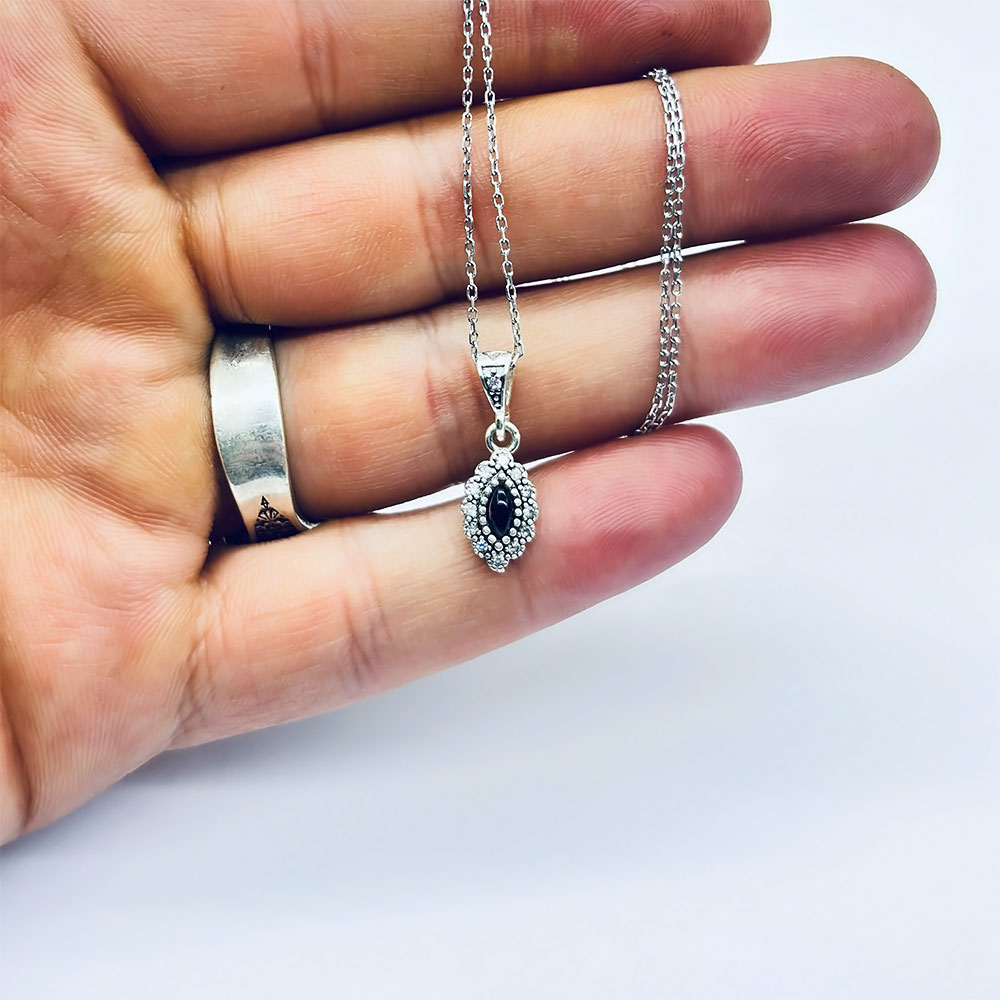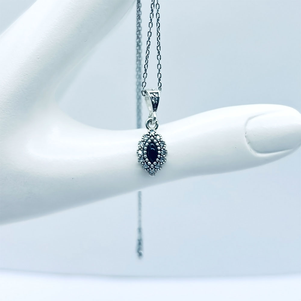 Mekik Mini Boy Zirkon ve Oltu Taşı İşçilikli 925 Ayar Gümüş Kolye