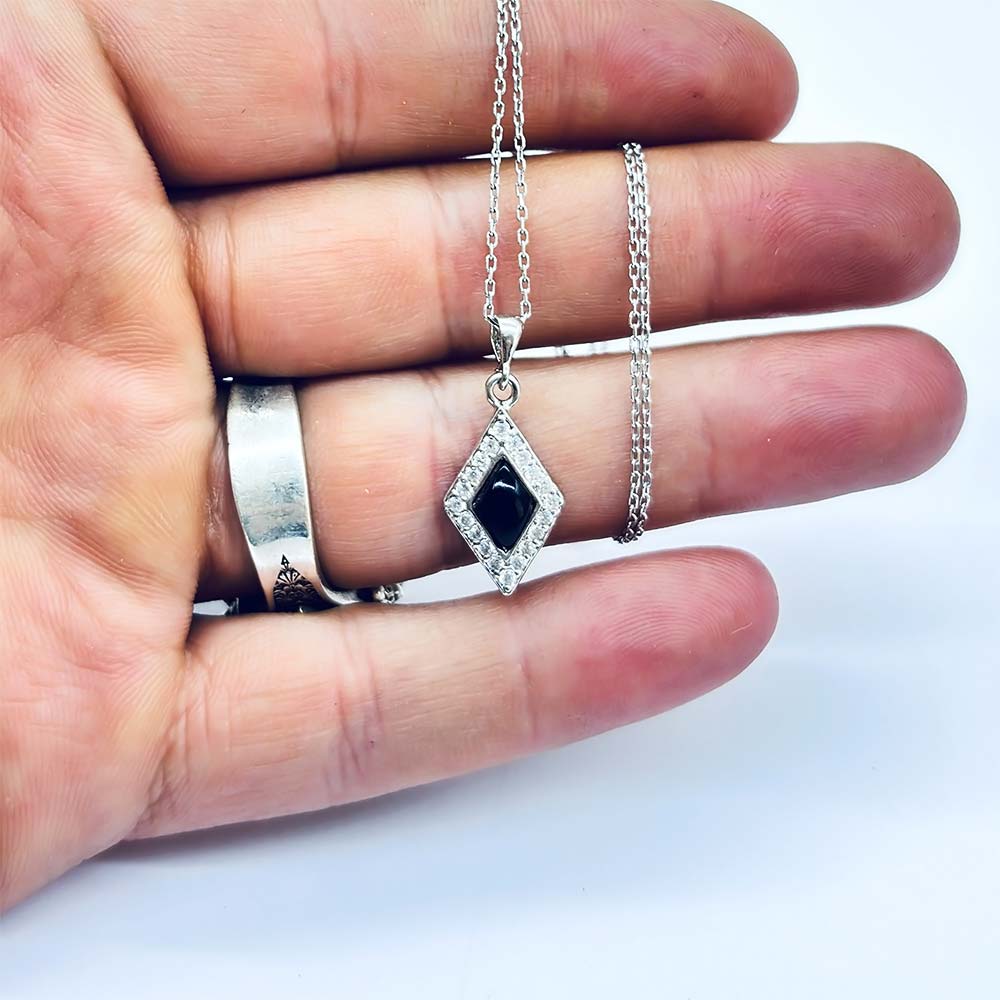 Özel karton kutusu ve özellikleri belirtilen kolye |