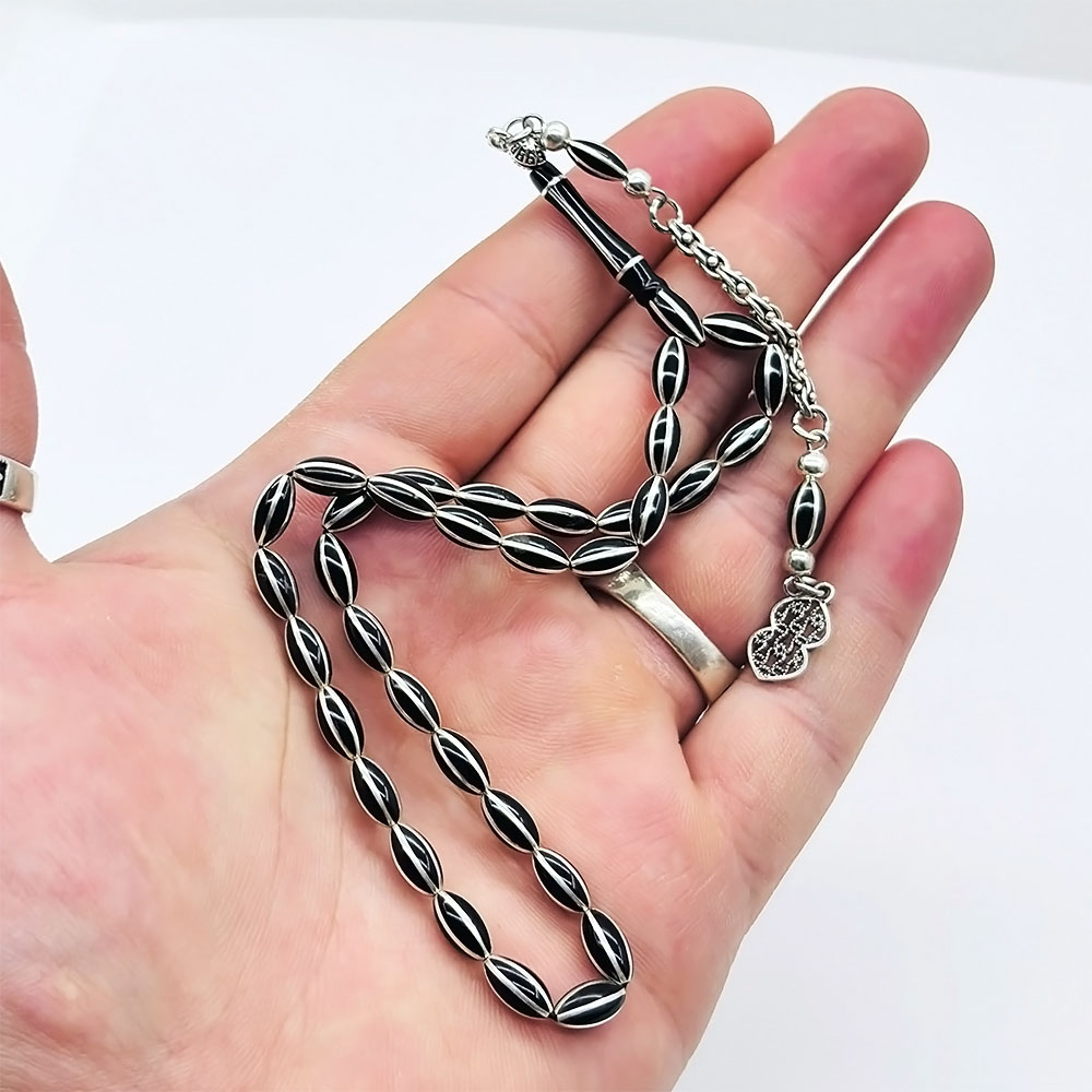 Özel kadife kutusu ve özellikleri belirtilen tesbih |