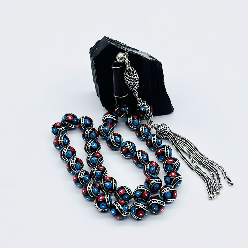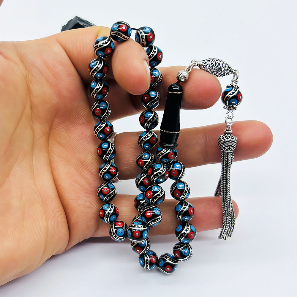 925 Ayar Gümüş İşleme renkli Orijinal Oltu Taşı Tesbih