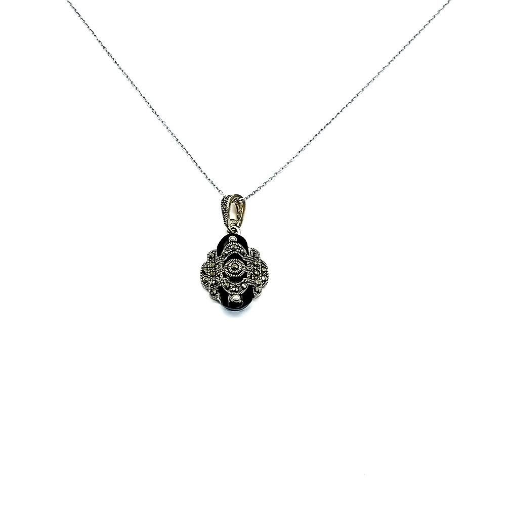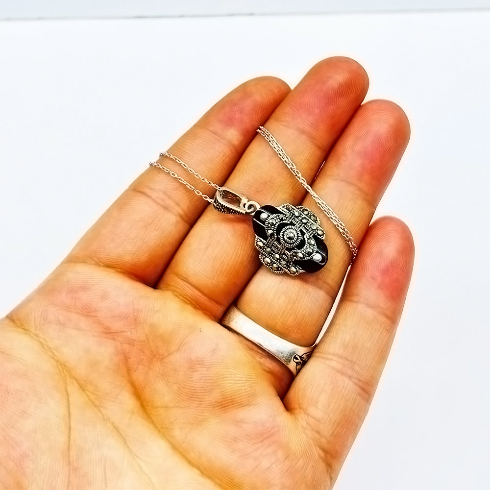Muska Model Oltu Taşı İşçilikli 925 Ayar Gümüş Kolye