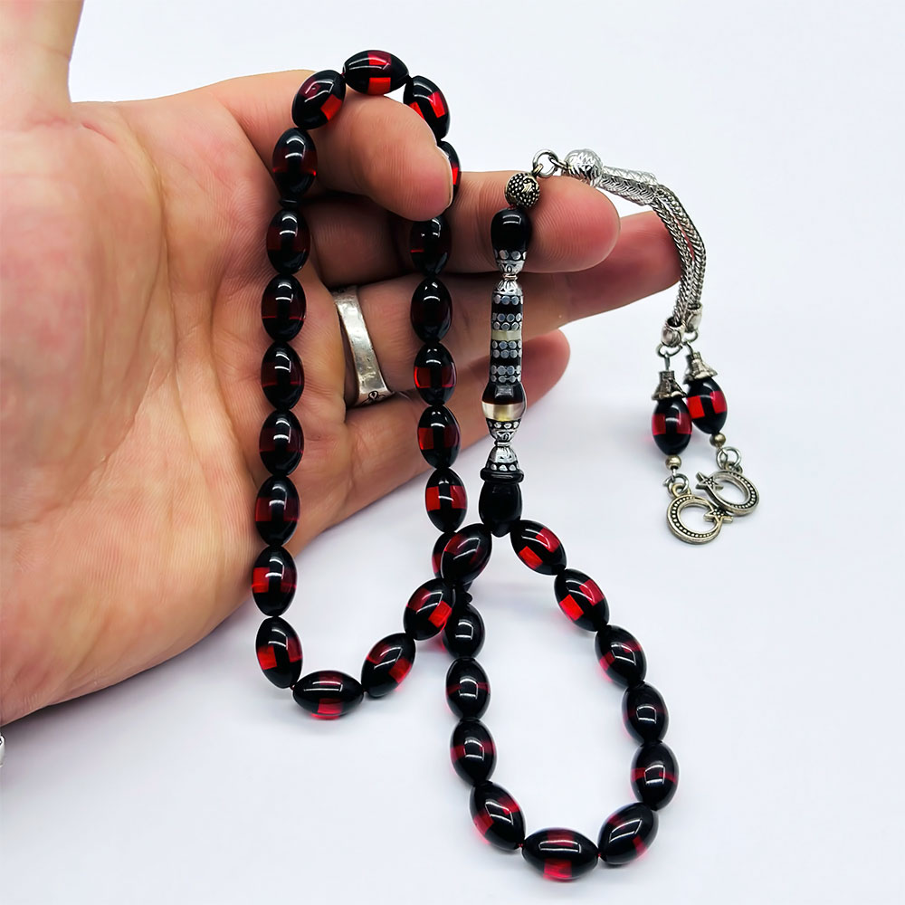 Koyu Kırmızı Sürmeli Kehribar Tesbih