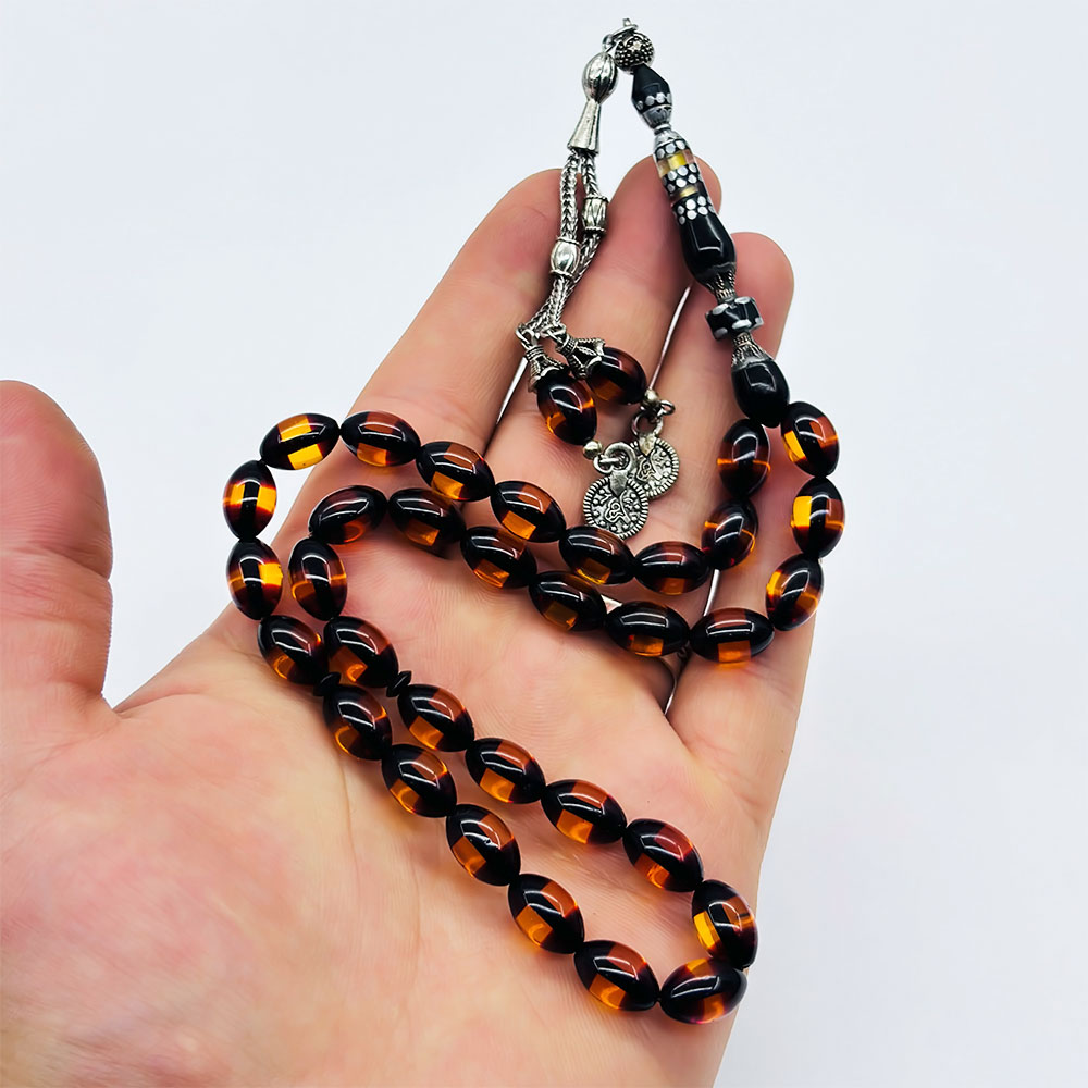 Çift Renk Sürmeli Toz Sıkma Kehribar Tesbih