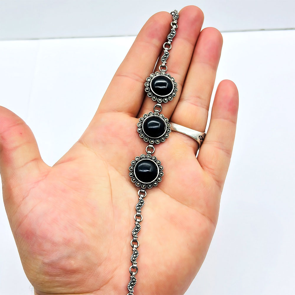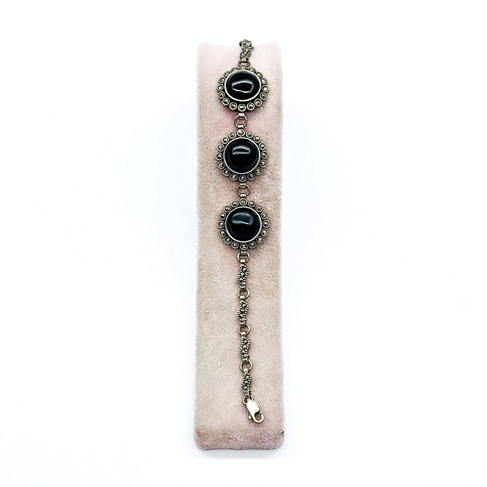 Oltu Taşı İşçilikli 925 Ayar Gümüş Kadın Bileklik