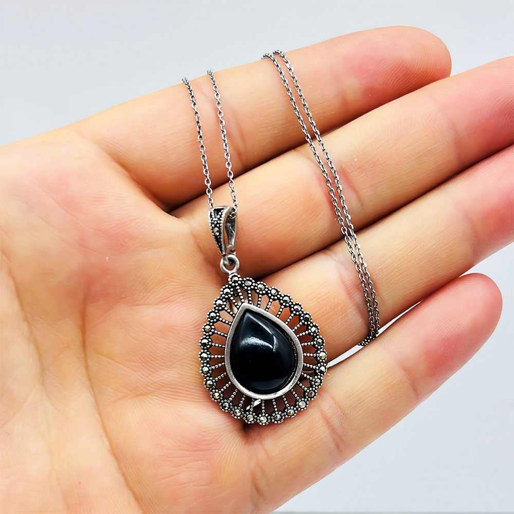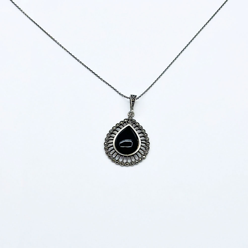 Oltu Taşı İşçilikli 925 Ayar Gümüş Kolye
