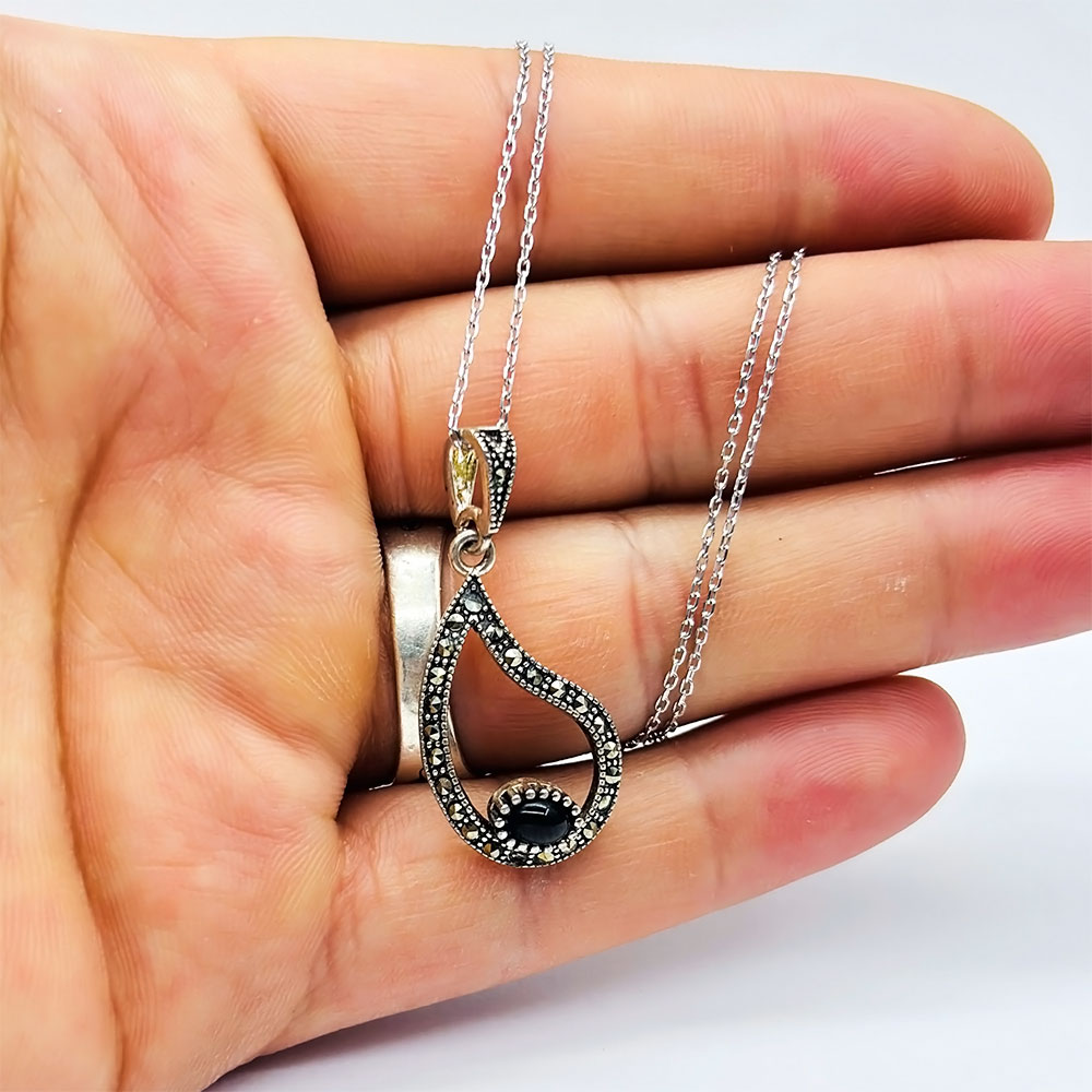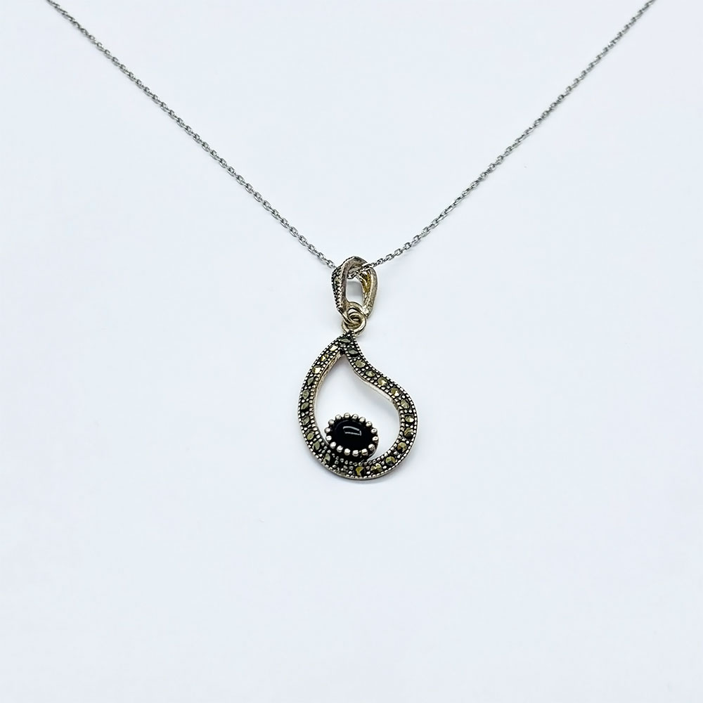 Oltu Taşı Tasarım İşçilikli 925 Ayar Gümüş Kolye