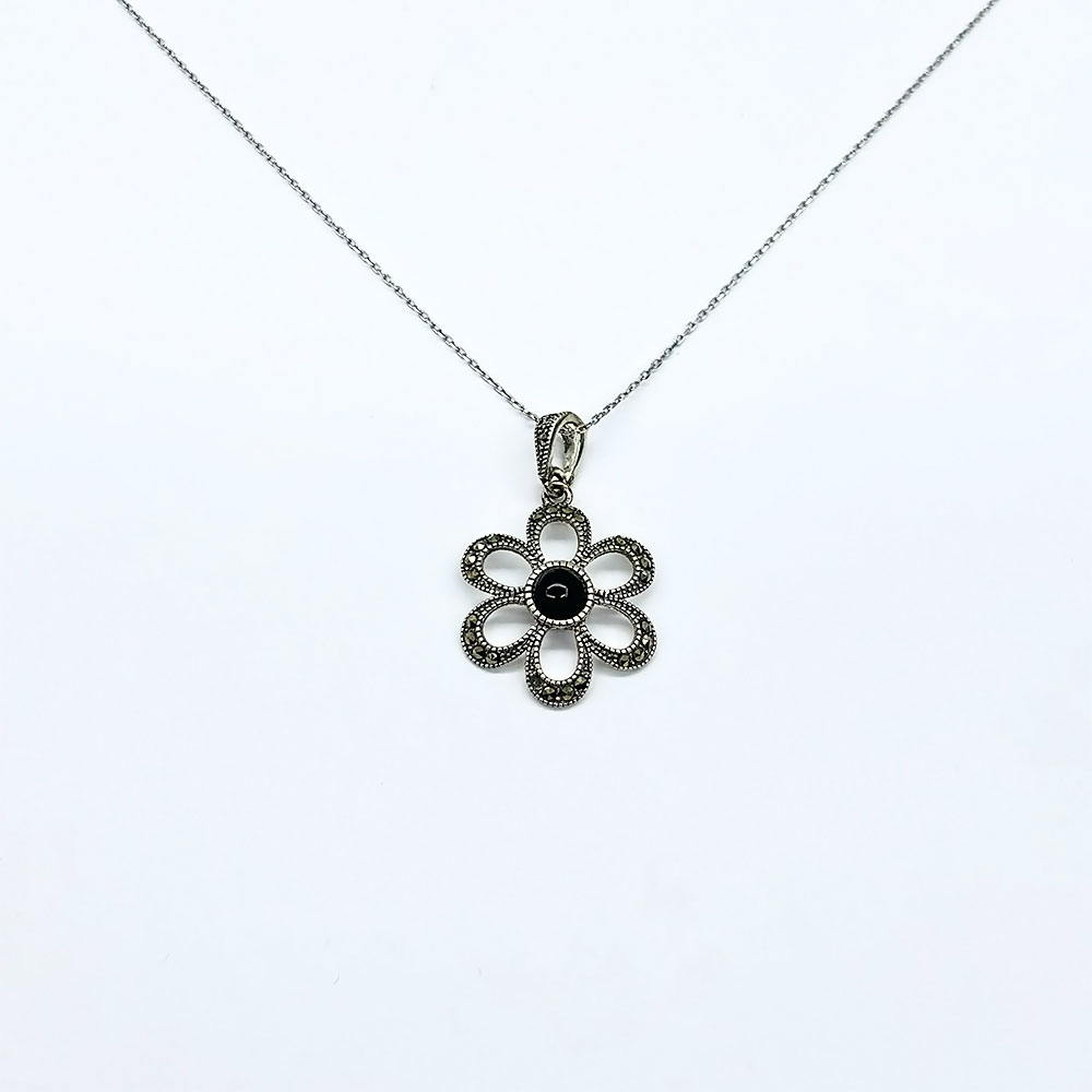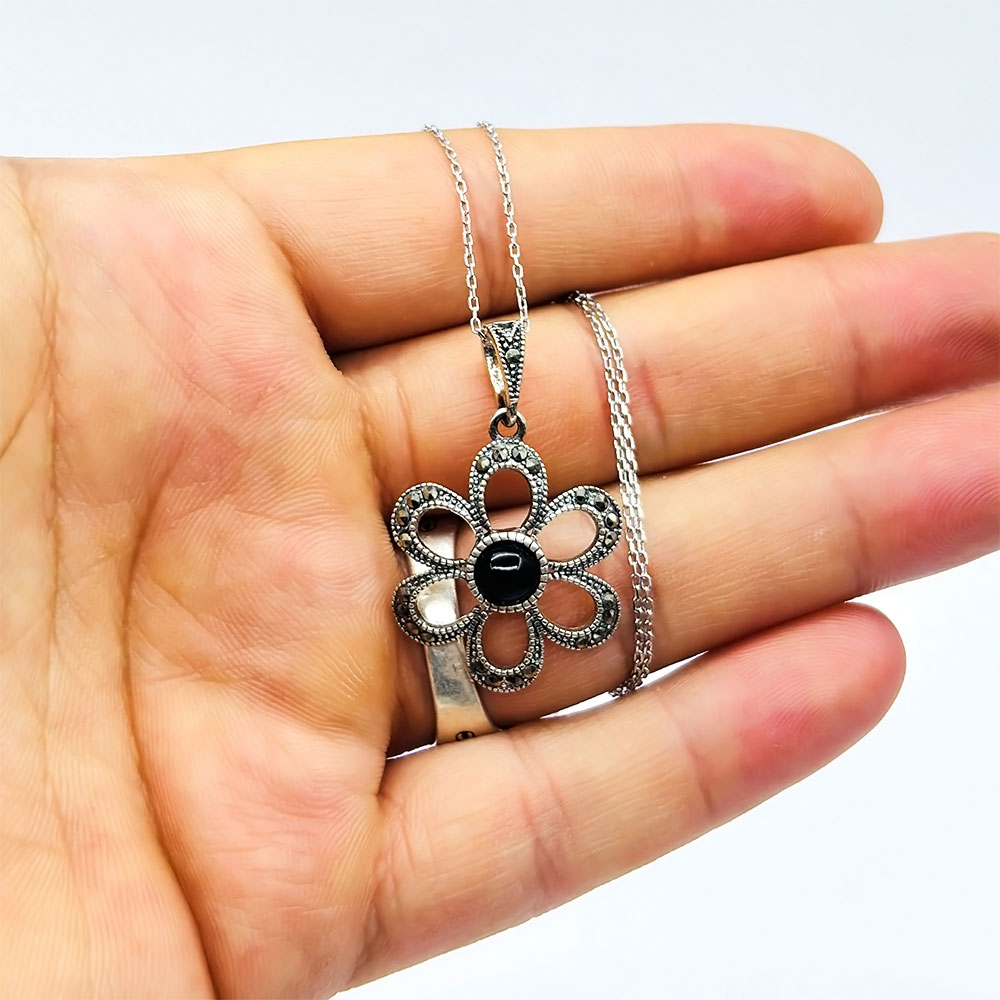 Oltu Taşı Tasarım İşçilikli 925 Ayar Gümüş Kolye