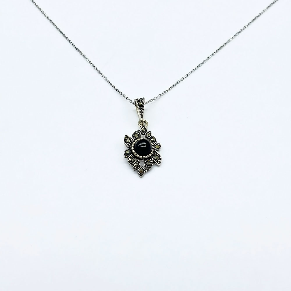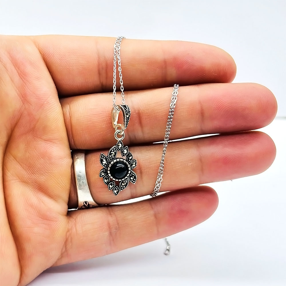 Oltu Taşı Tasarım İşçilikli 925 Ayar Gümüş Kolye