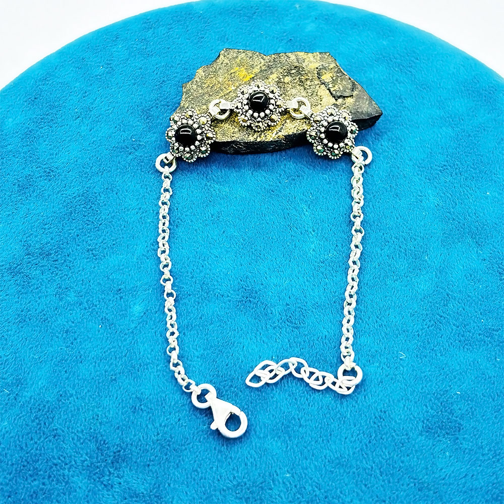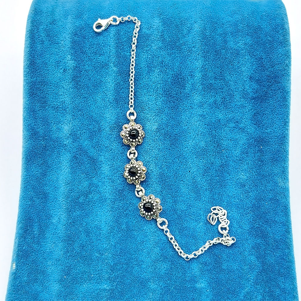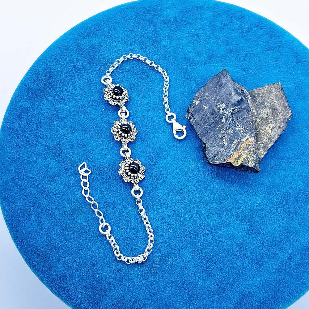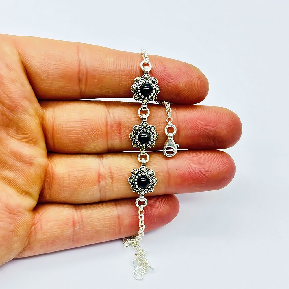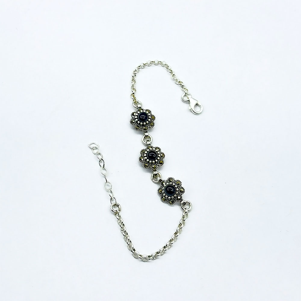 Oltu Taşı ve Gül Markazit Model 925 Ayar Gümüş Bileklik