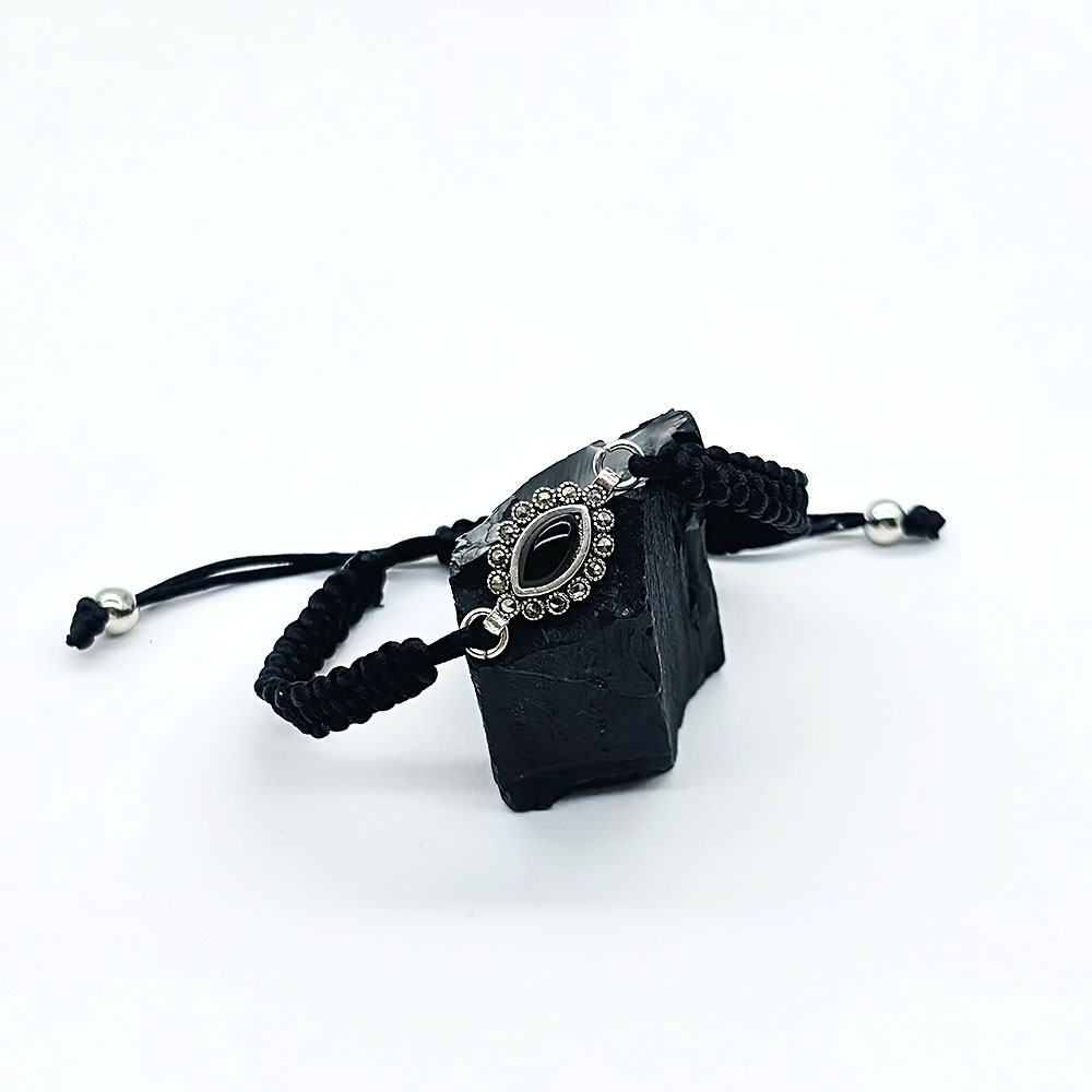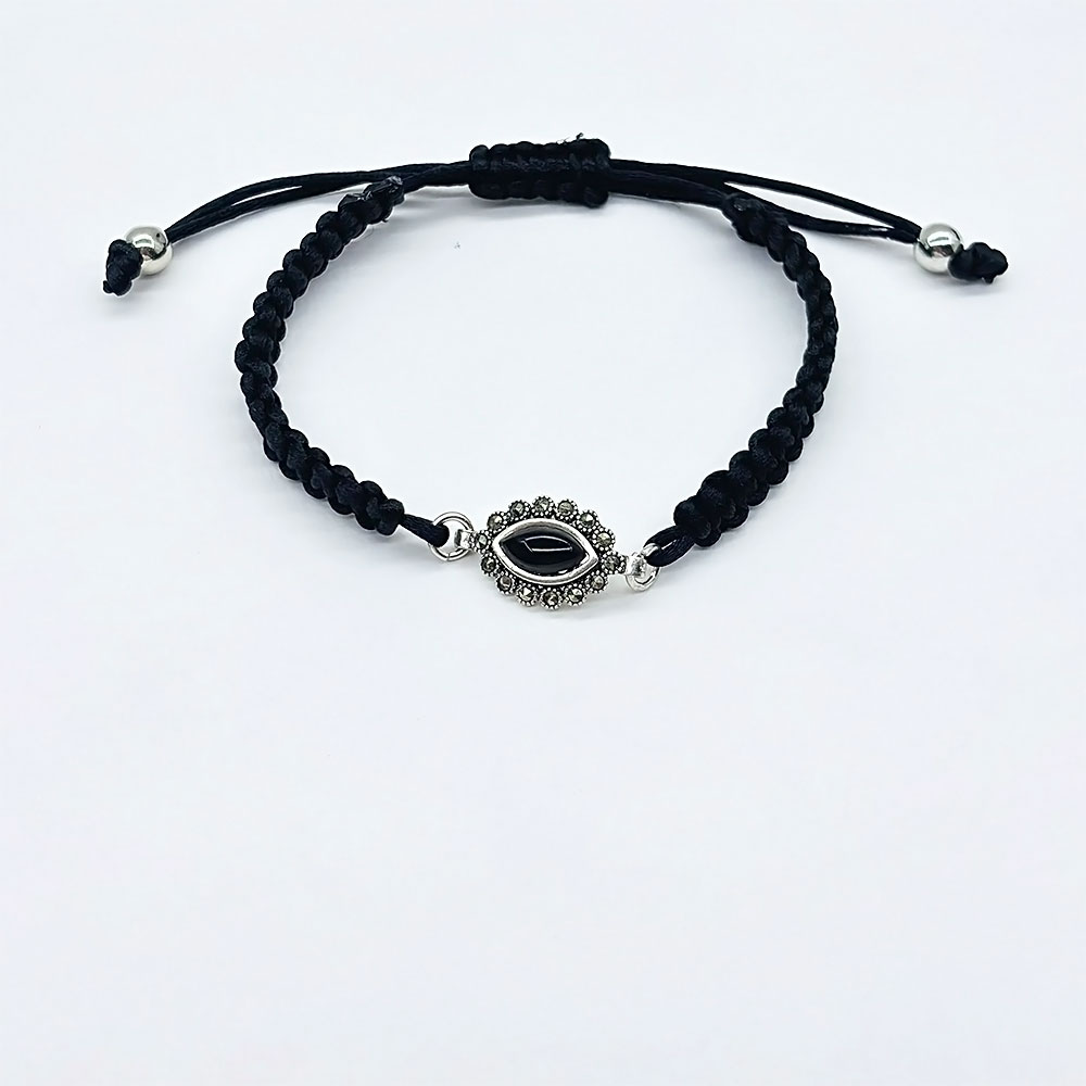 Örgü İpli Zirkon ve Oltu Taşı İşçilikli 925 Ayar Gümüş Bileklik