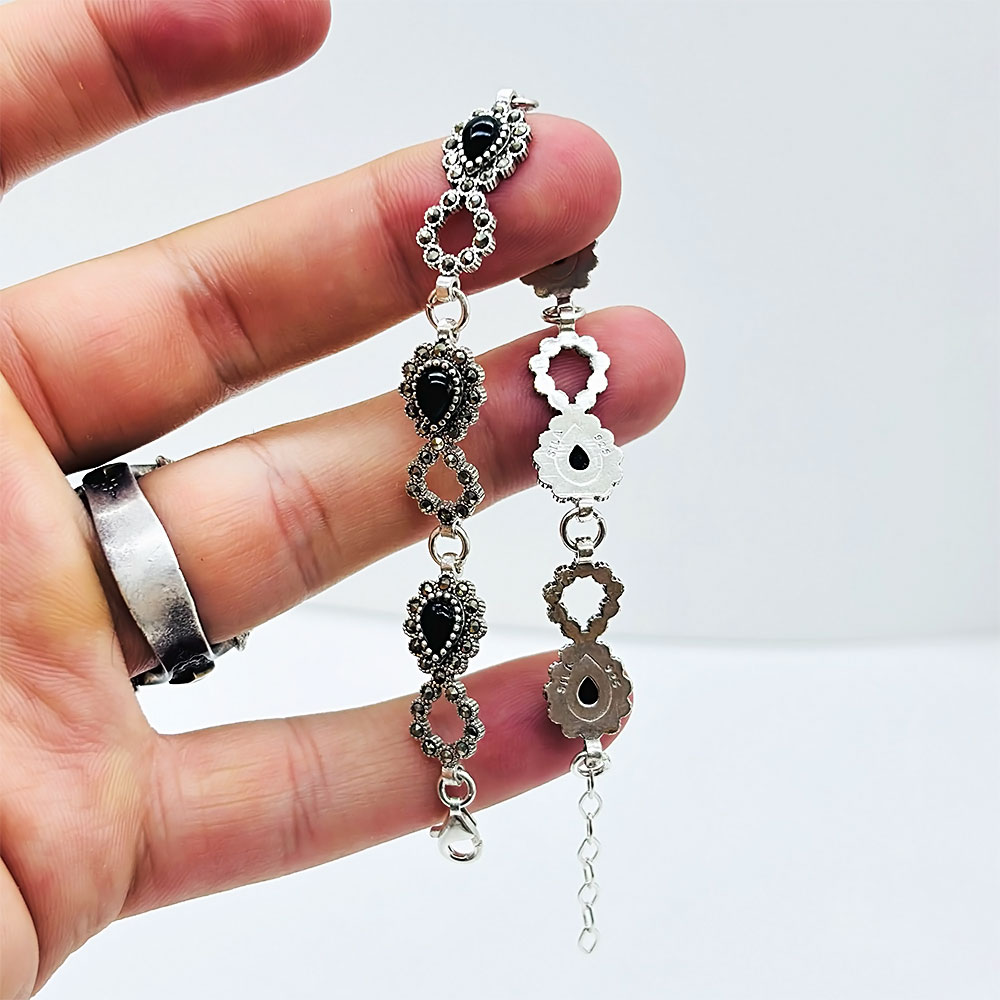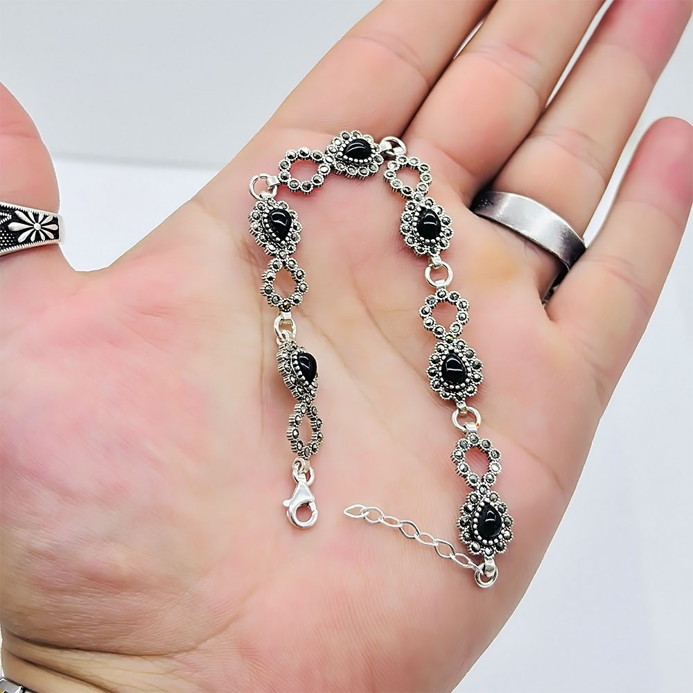 Özel Damla Model Oltu Taşı İşçilikli 925 Ayar Gümüş Bileklik