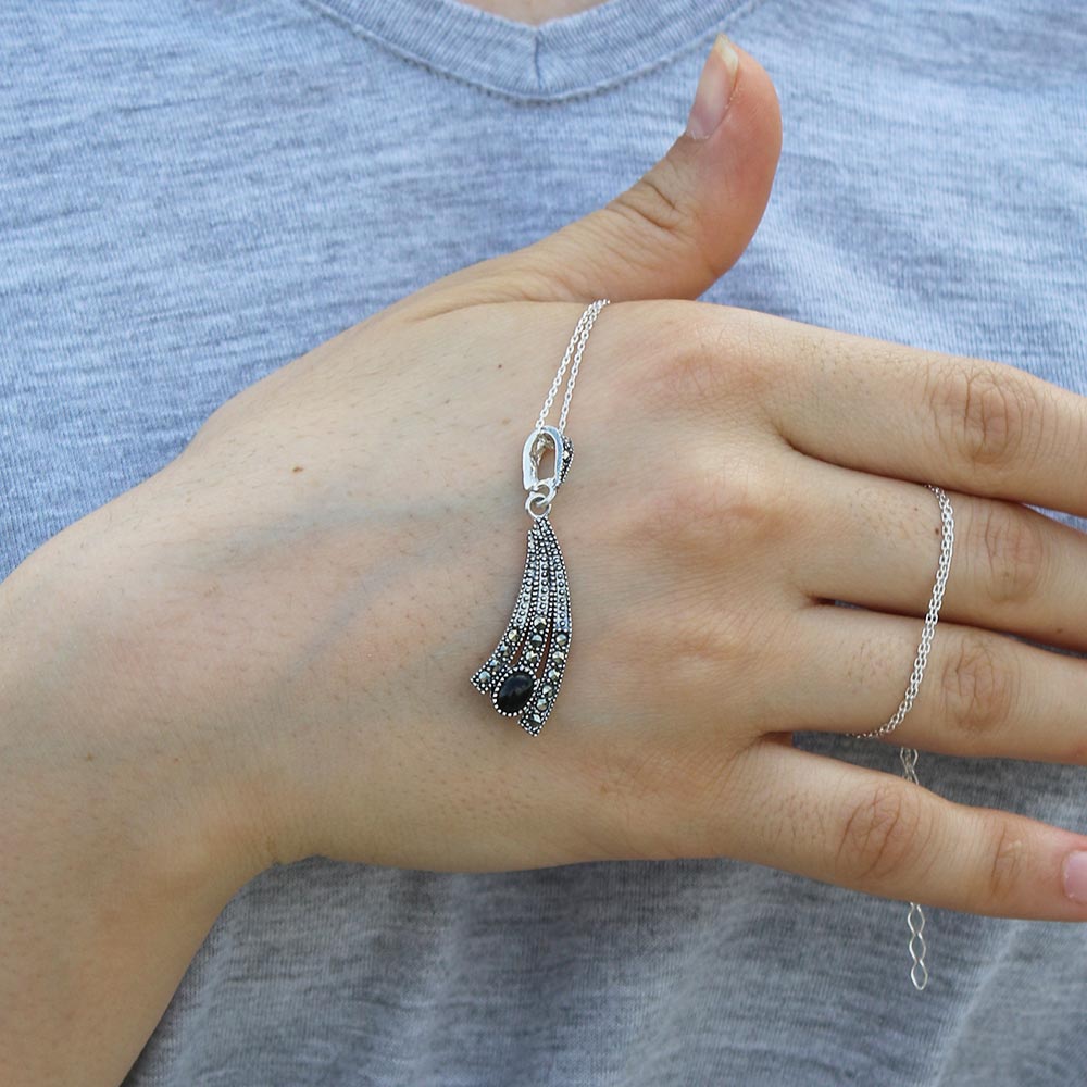 Özel Model Gümüş Ve Oltu Taşlı Kolye