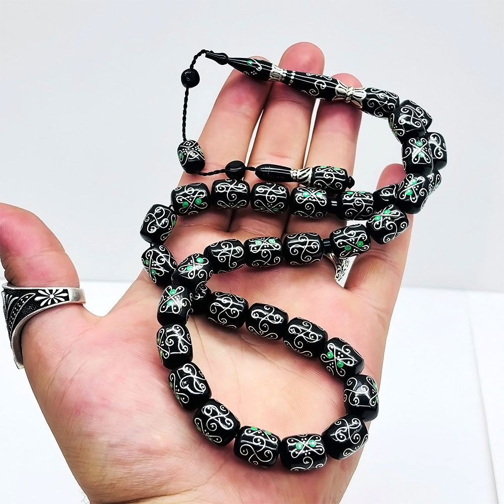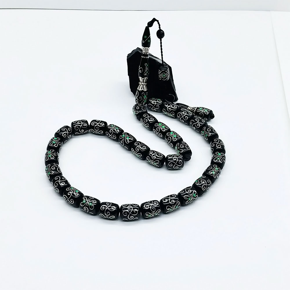 Özel kadife kutusu ve özellikleri belirtilen tesbih |