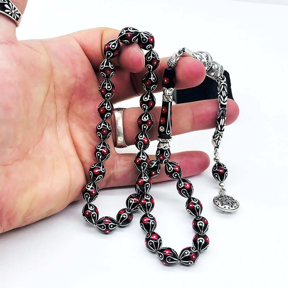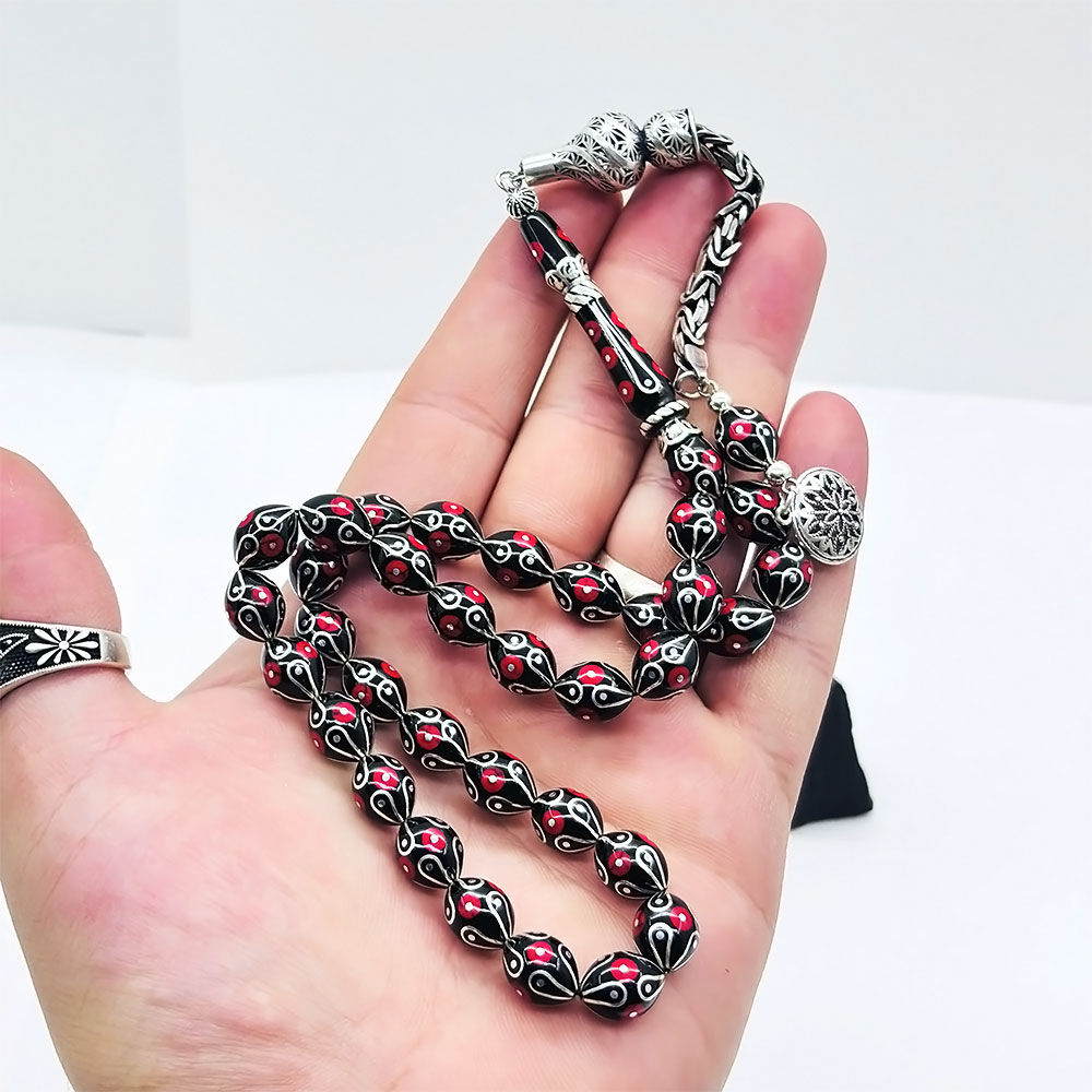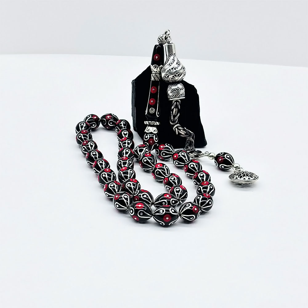 Özel kadife kutusu ve özellikleri belirtilen tesbih |