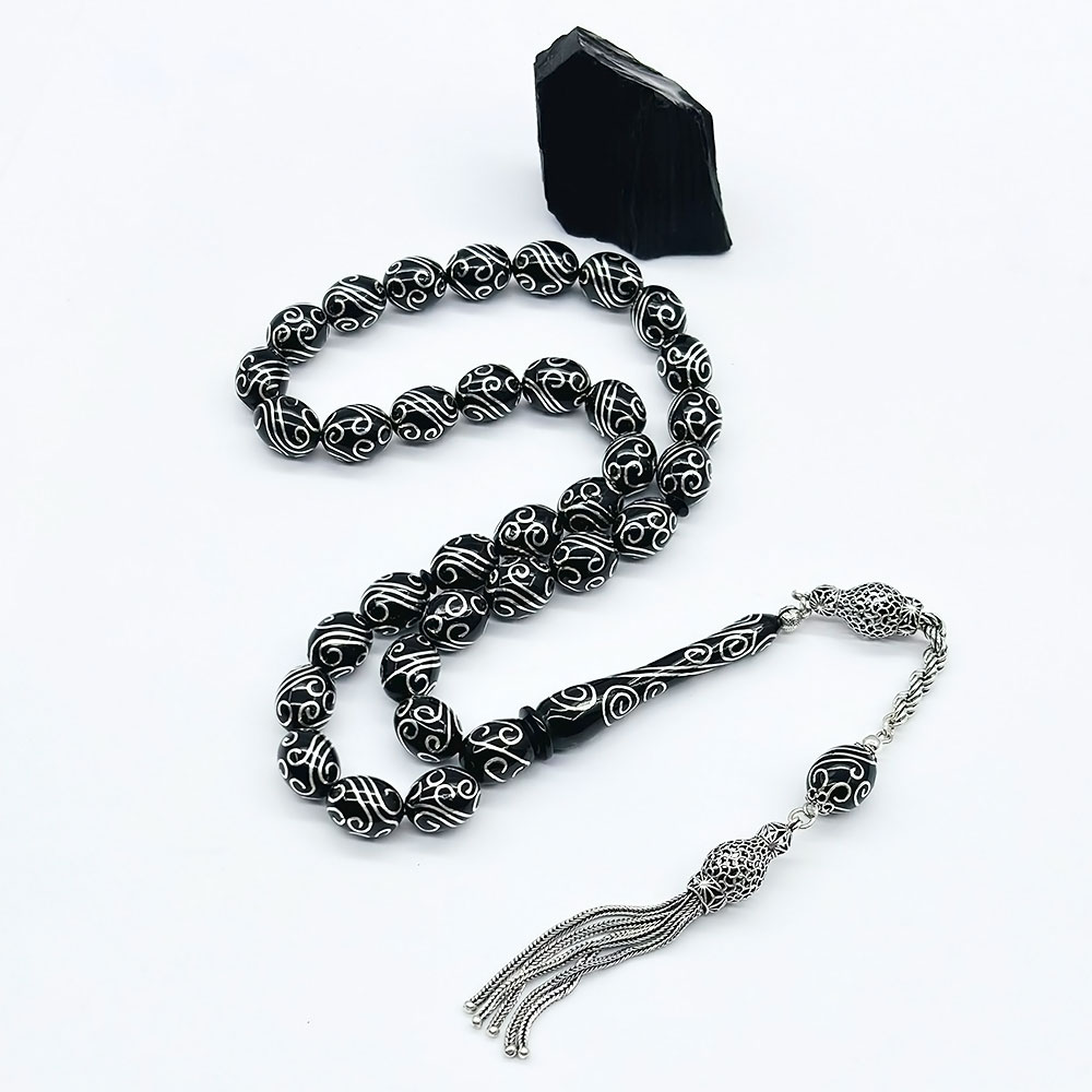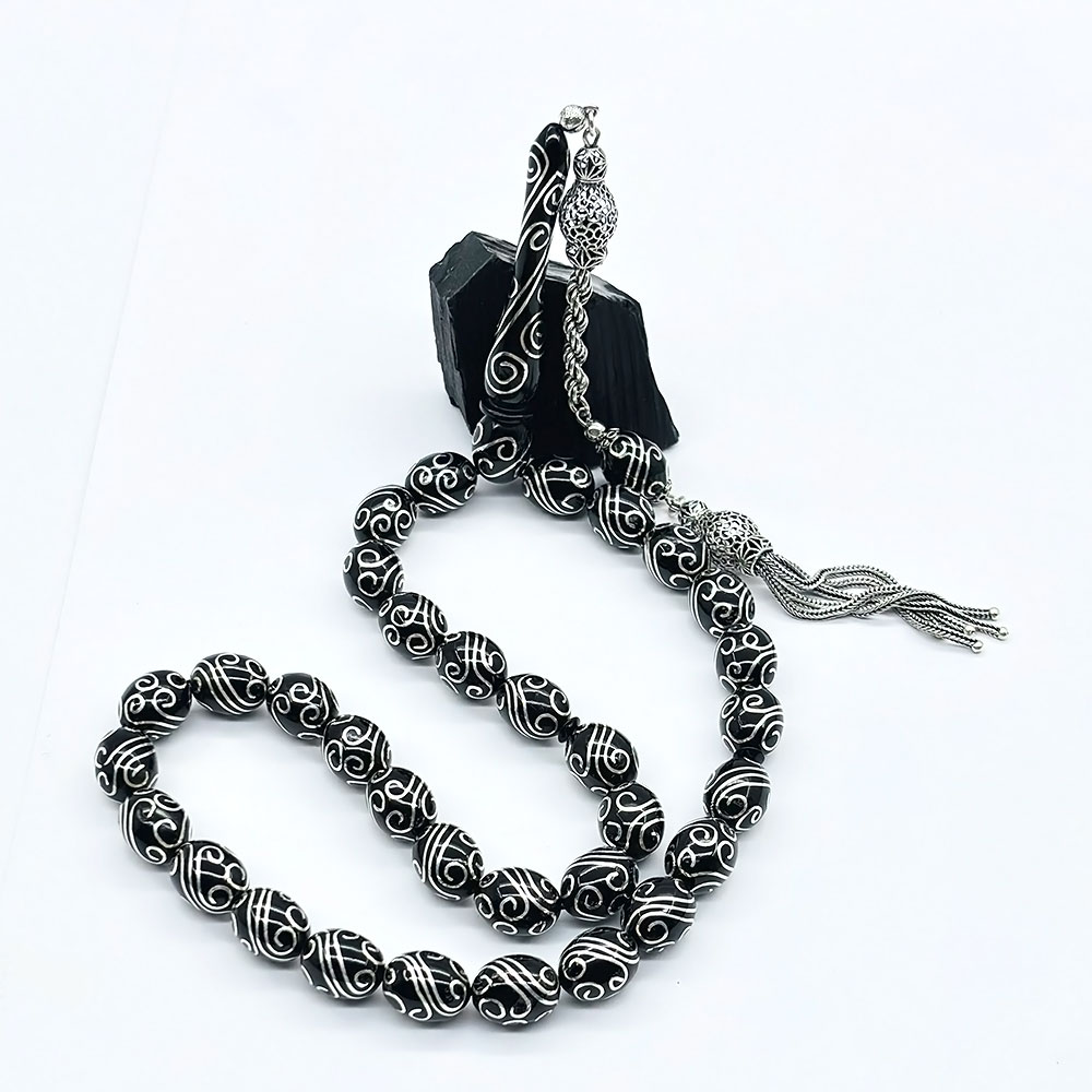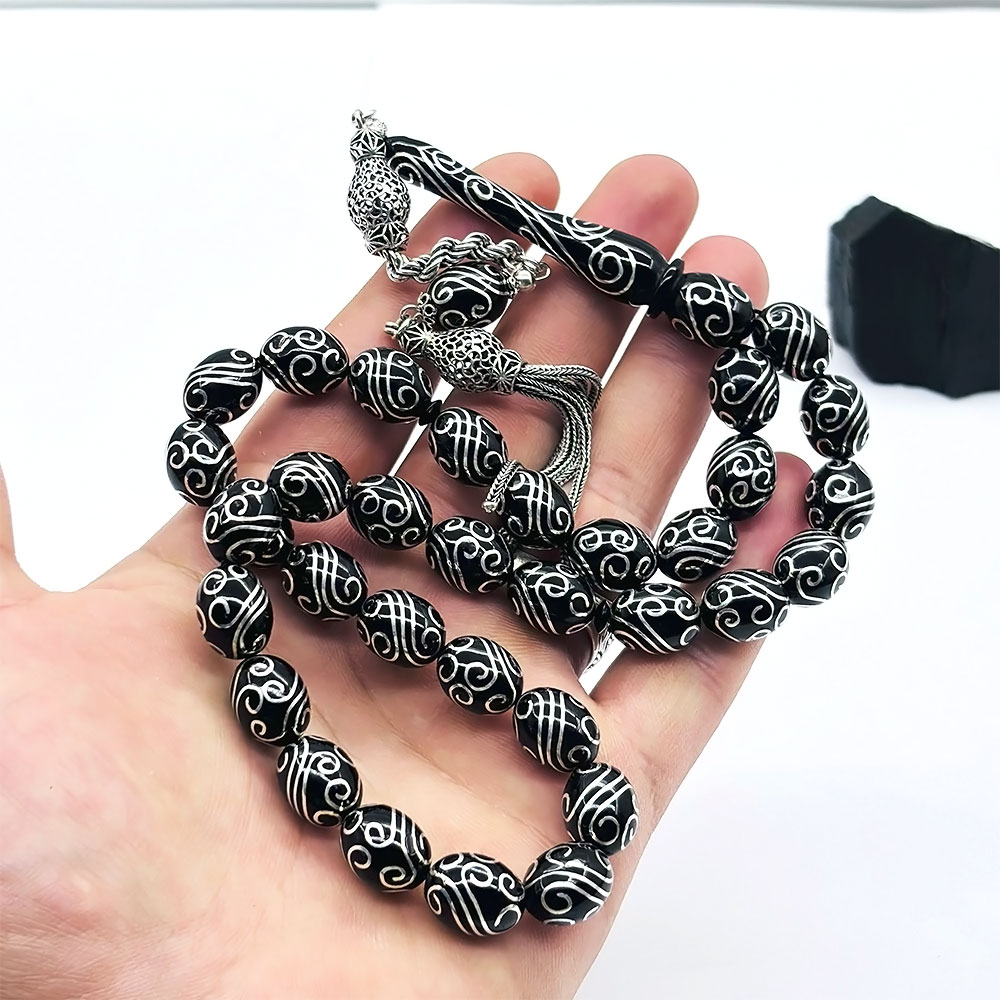 Özel kadife kutusu ve özellikleri belirtilen tesbih |