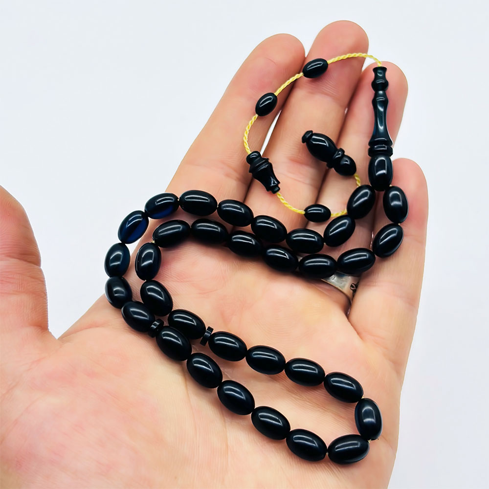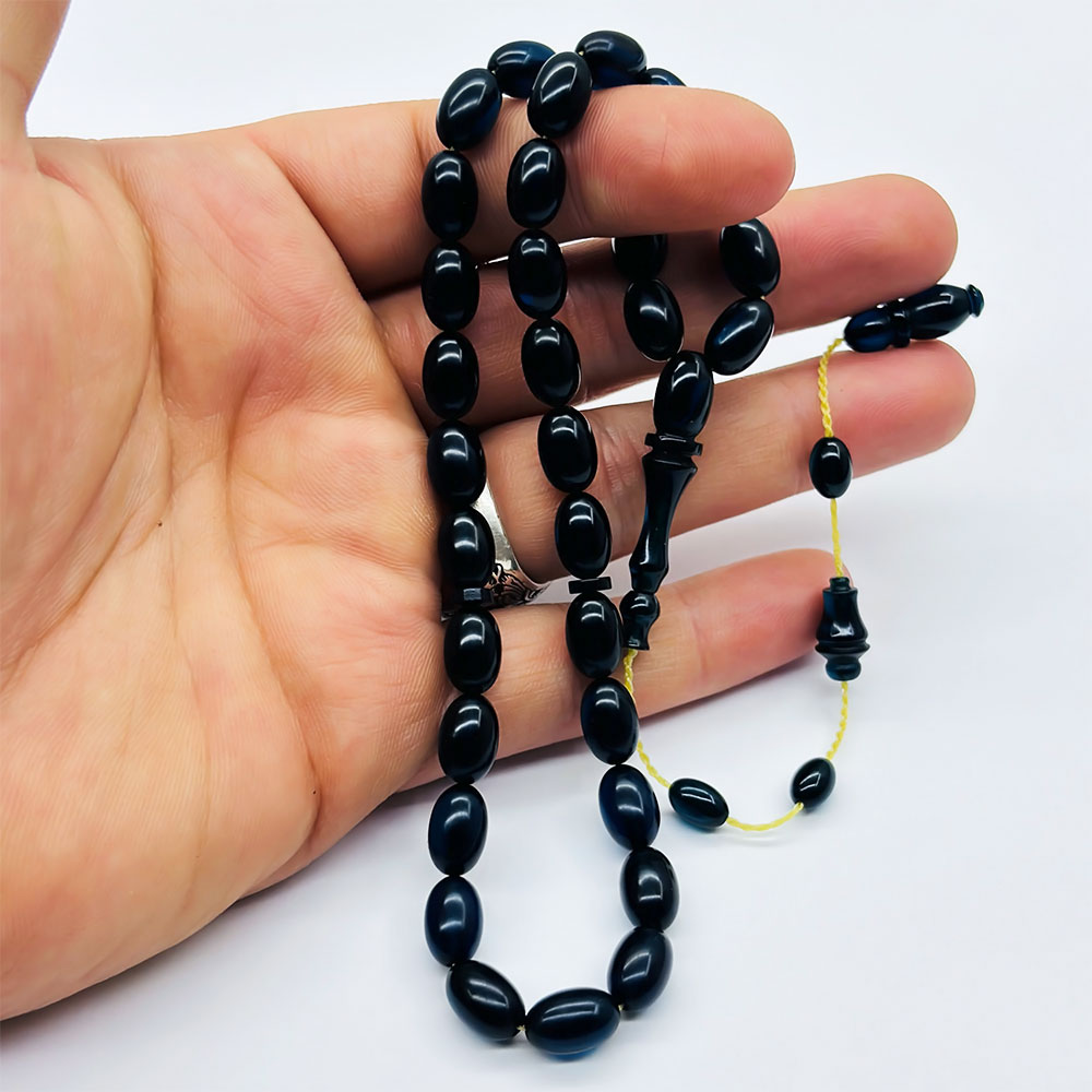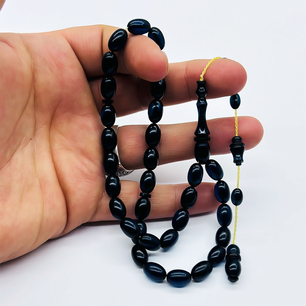Beyzi Model Parlement Mavisi Ateş Kehribar Tesbih (7 x 11 mm)