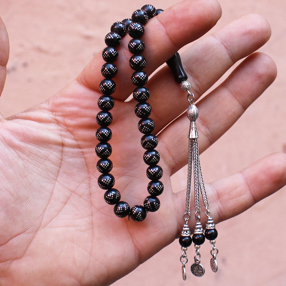 Özel karton kutusu ve özellikleri belirtilen tesbih |
