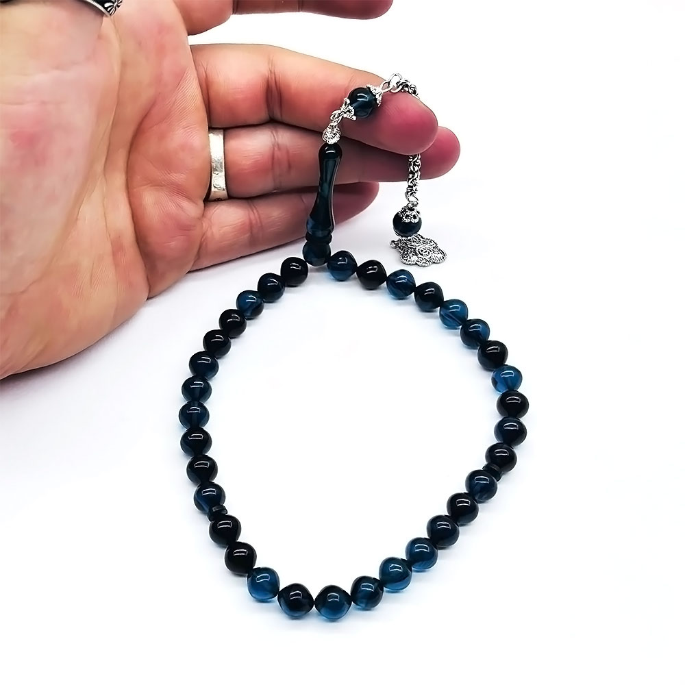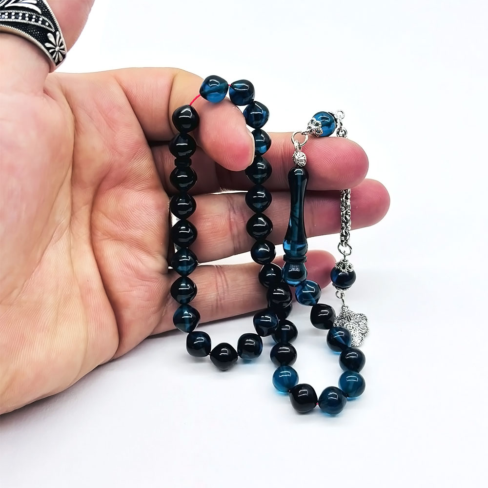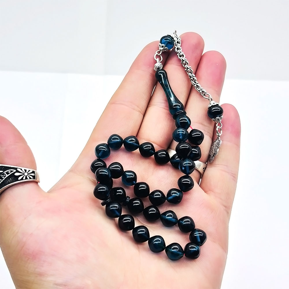 Beyzi Model Parlement Mavisi Ateş Kehribar Tesbih (7 x 11 mm)