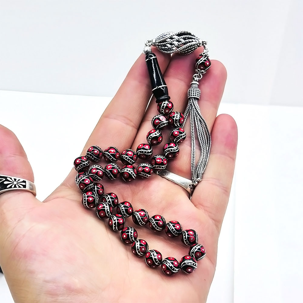 Özel kadife kutusu ve özellikleri belirtilen tesbih |