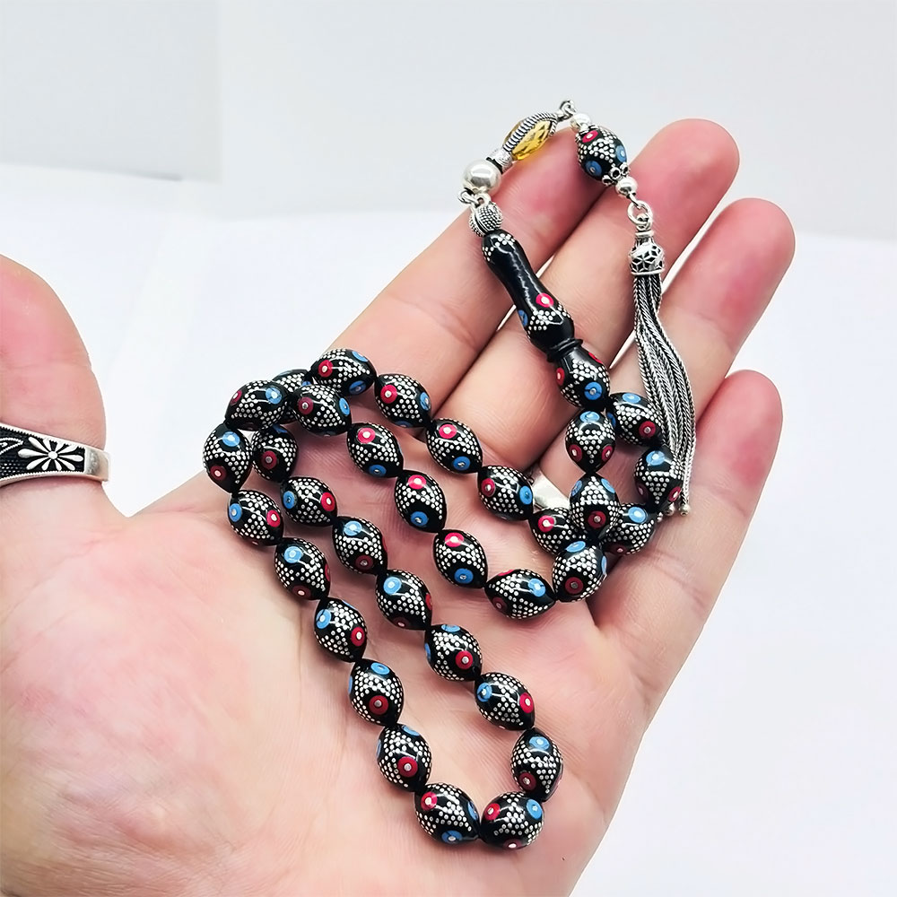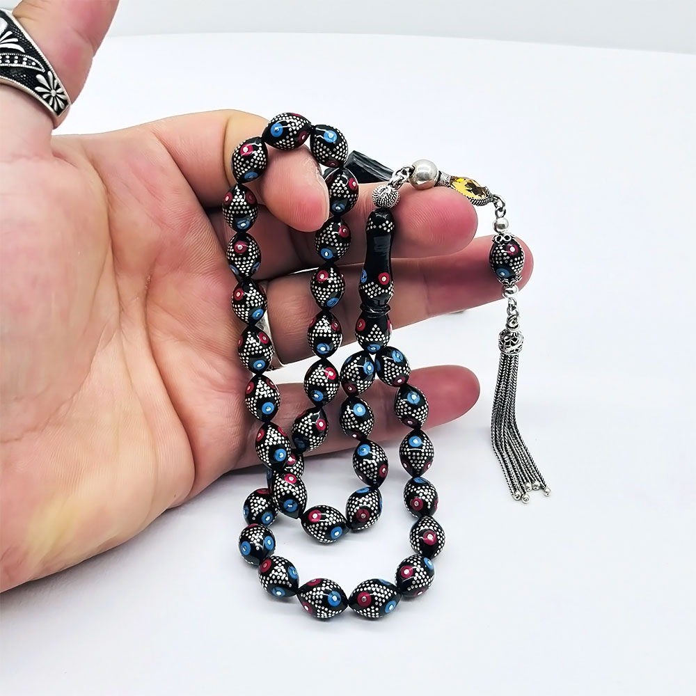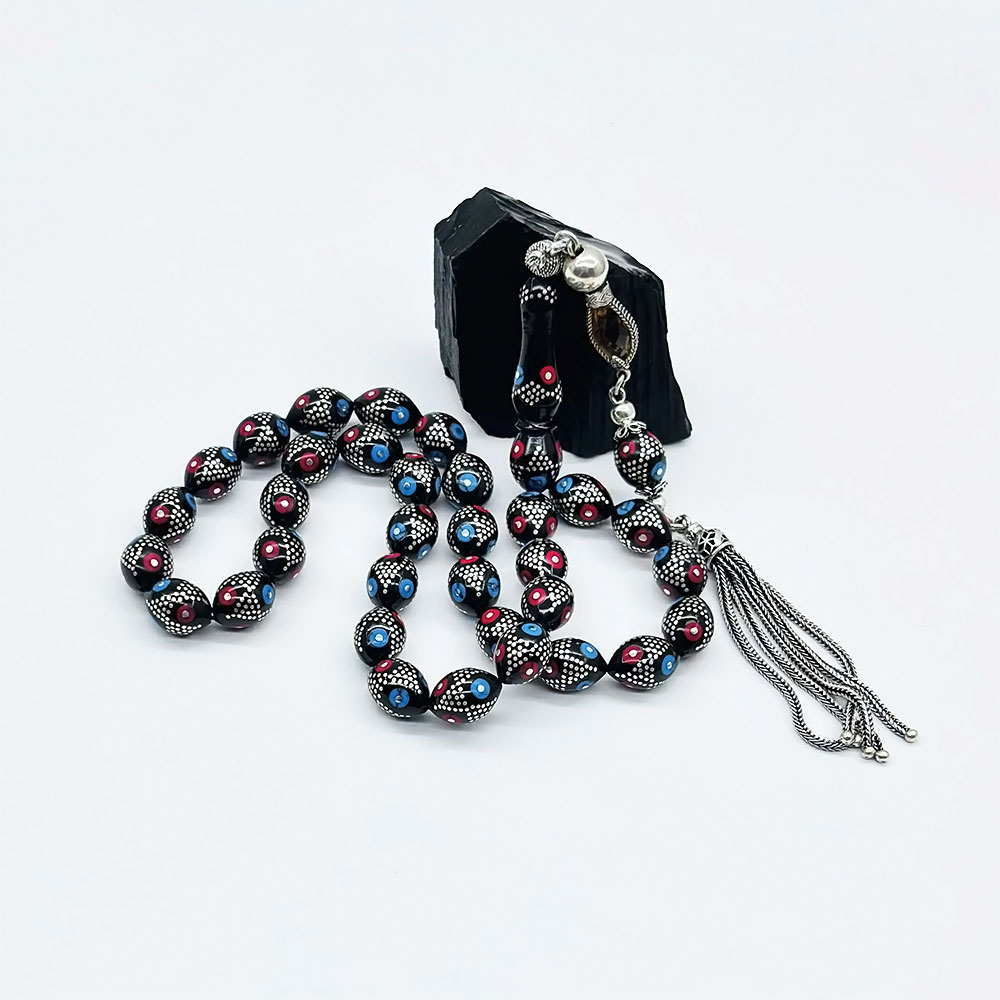 Özel kadife kutusu ve özellikleri belirtilen tesbih |