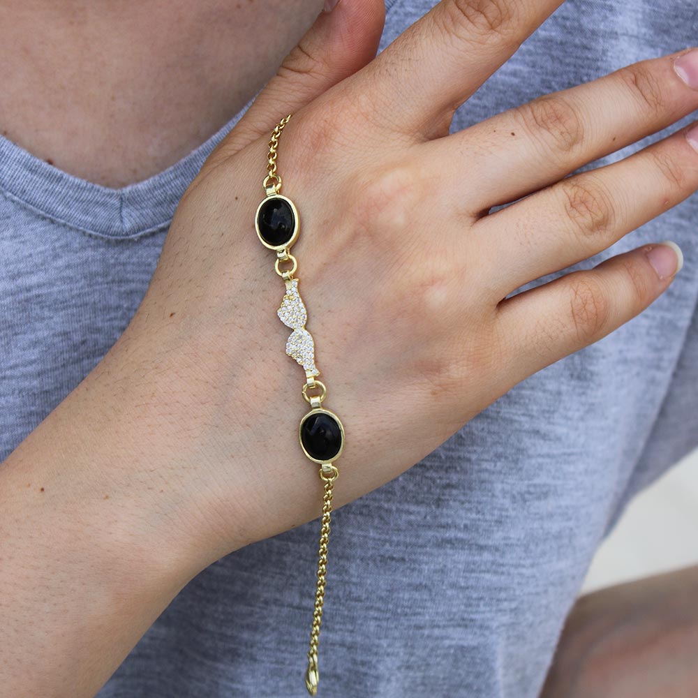 Zirkon ve Oltu Taşı İşçilikli 925 Ayar Gümüş Bileklik