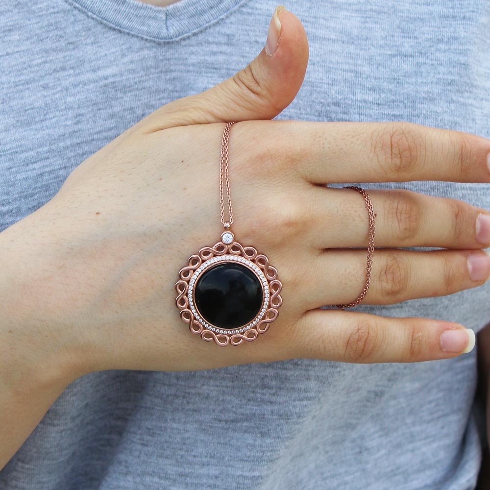 Renkli Yuvarlak Sonsuzluk Çember Model Gümüş Ve Oltu Taşlı Kolye