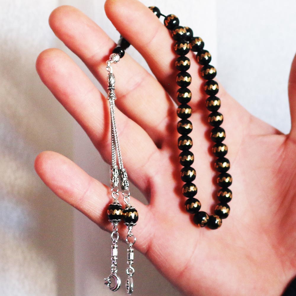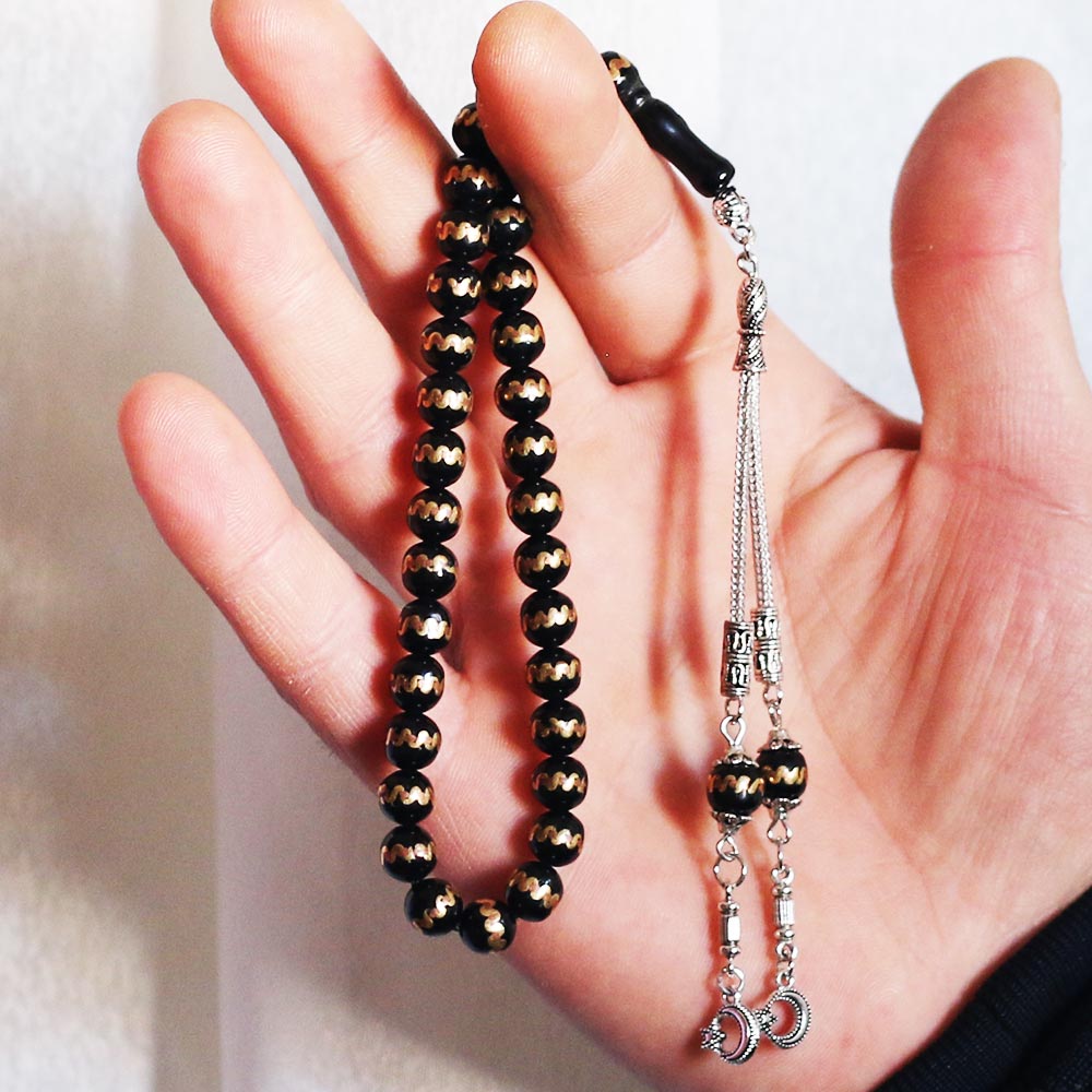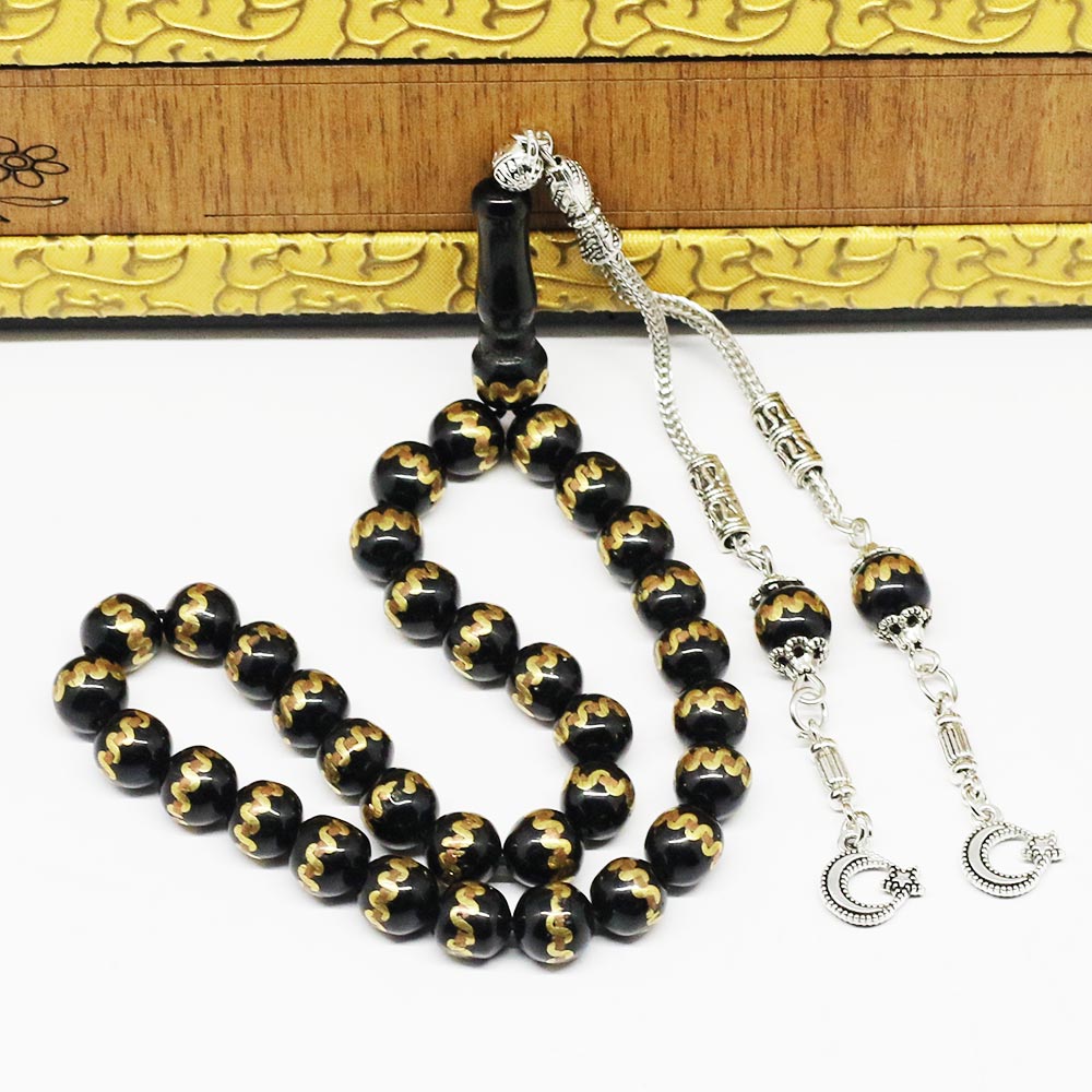 Sarı Yaldız İşlemeli Gürcistan Oltu Taşı Tesbih