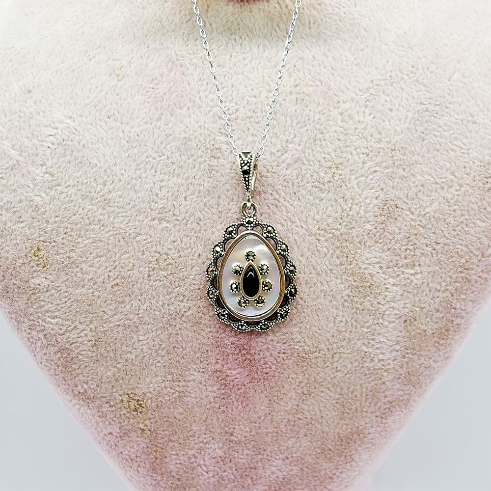 Sedef ve Oltu Taşı İşçilikli 925 Ayar Gümüş Kolye