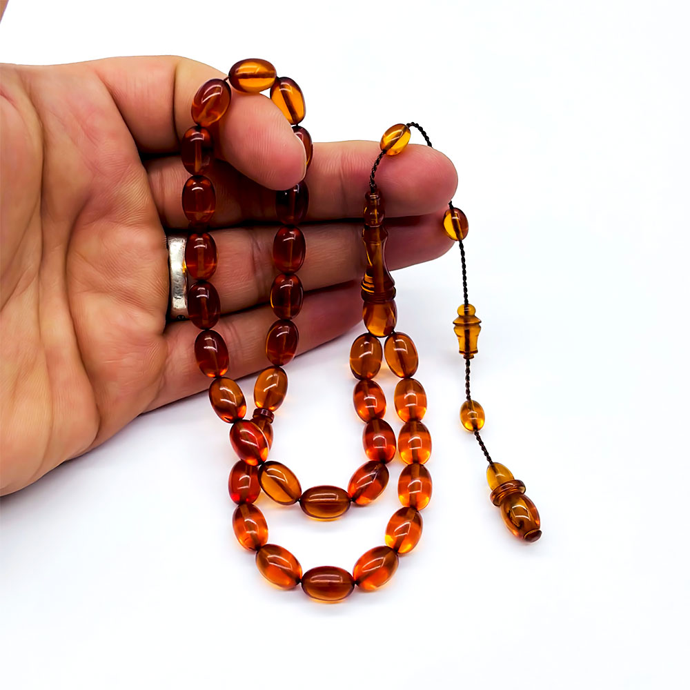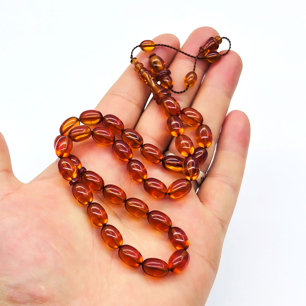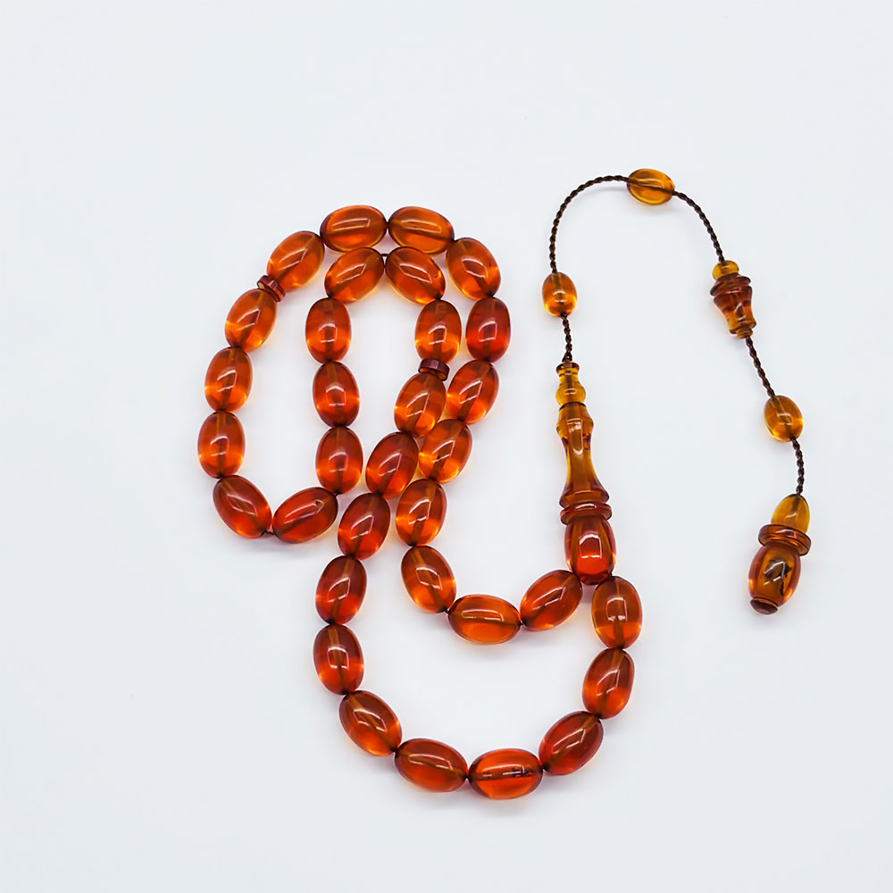 Şeffaf Turuncu Renkte Sıkma Ateş Kehribar Tesbih