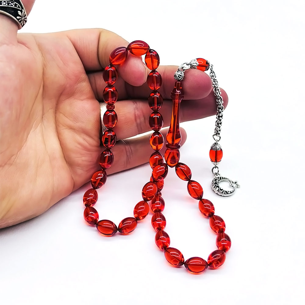 Sistemli Kırmızı Kapsül  Ateş Kehribar Tesbih