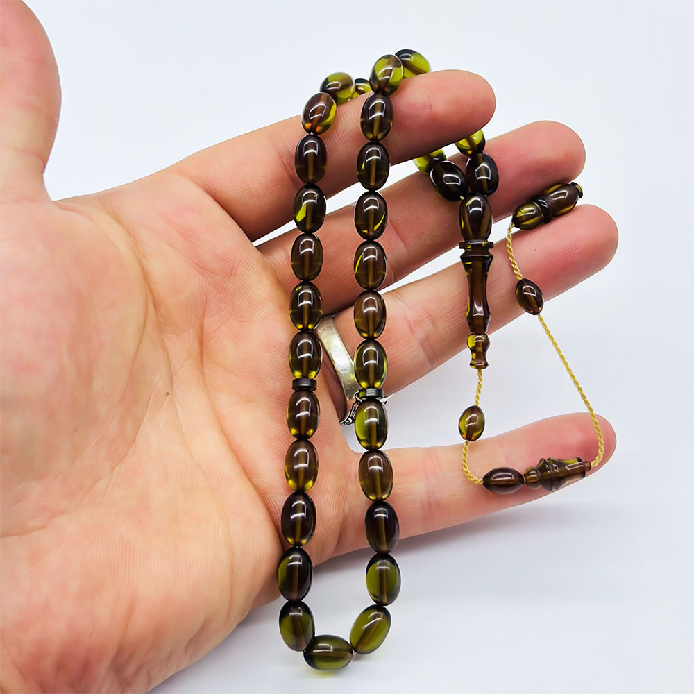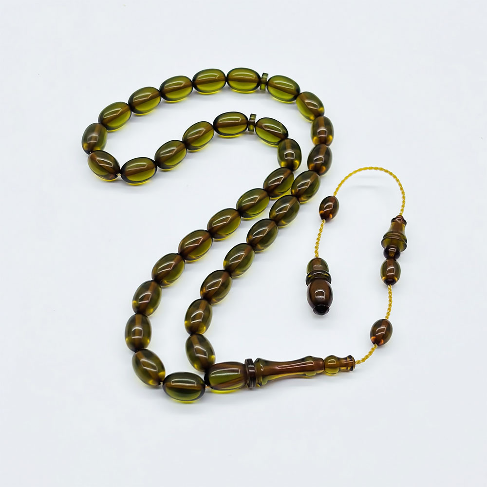 Şeffaf Yeşil Renkte Sıkma Ateş Kehribar Tesbih