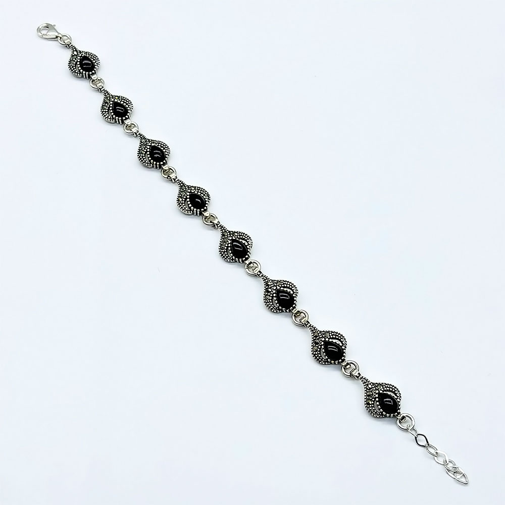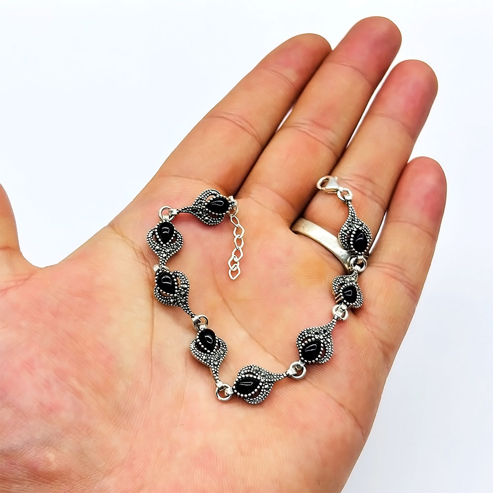 Su Yolu Damla Model Oltu Taşı İşçilikli 925 Ayar Gümüş Bileklik