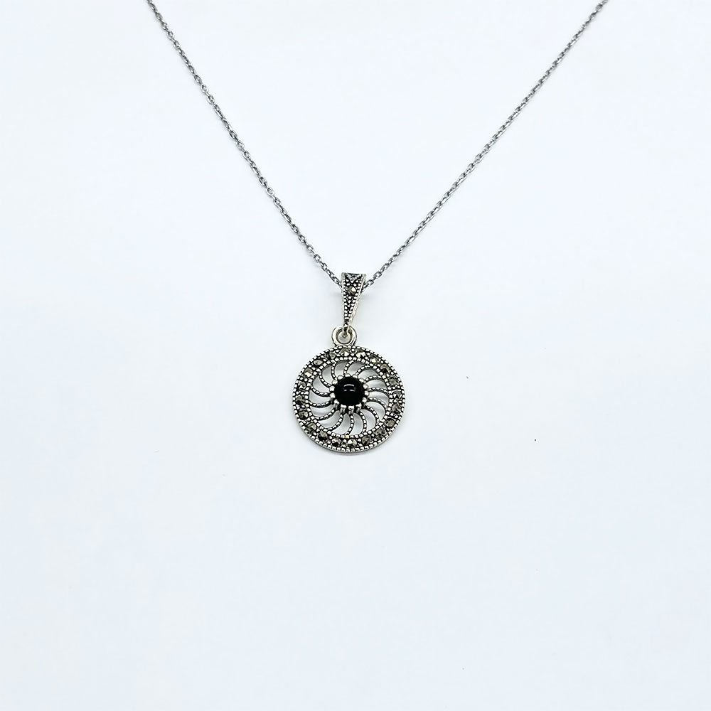 Tekerlek Model Oltu Taşı İşçilikli 925 Ayar Gümüş Kolye