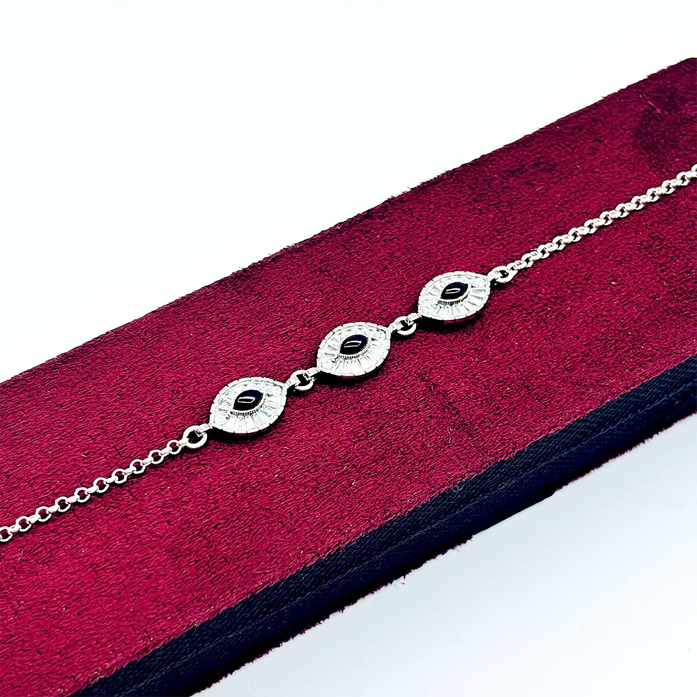 Mekik Model Zirkon ve Oltu Taşı İşçilikli 925 Ayar Gümüş Bileklik 925 Ayar Gümüş bileklik