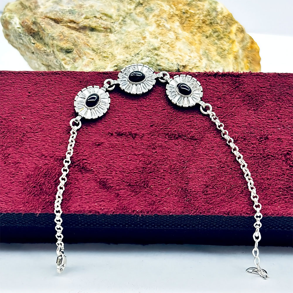 Damla Model Zirkon ve Oltu Taşı İşçilikli 925 Ayar Gümüş Kadın Bileklik 925 Ayar Gümüş bileklik