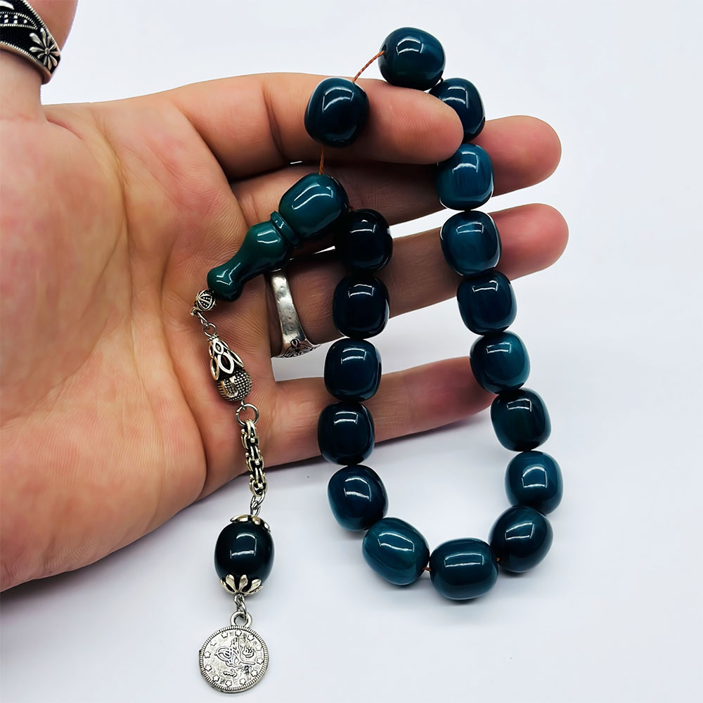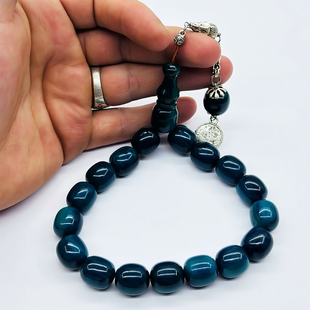 Beyzi Model Parlement Mavisi Ateş Kehribar Tesbih (7 x 11 mm)