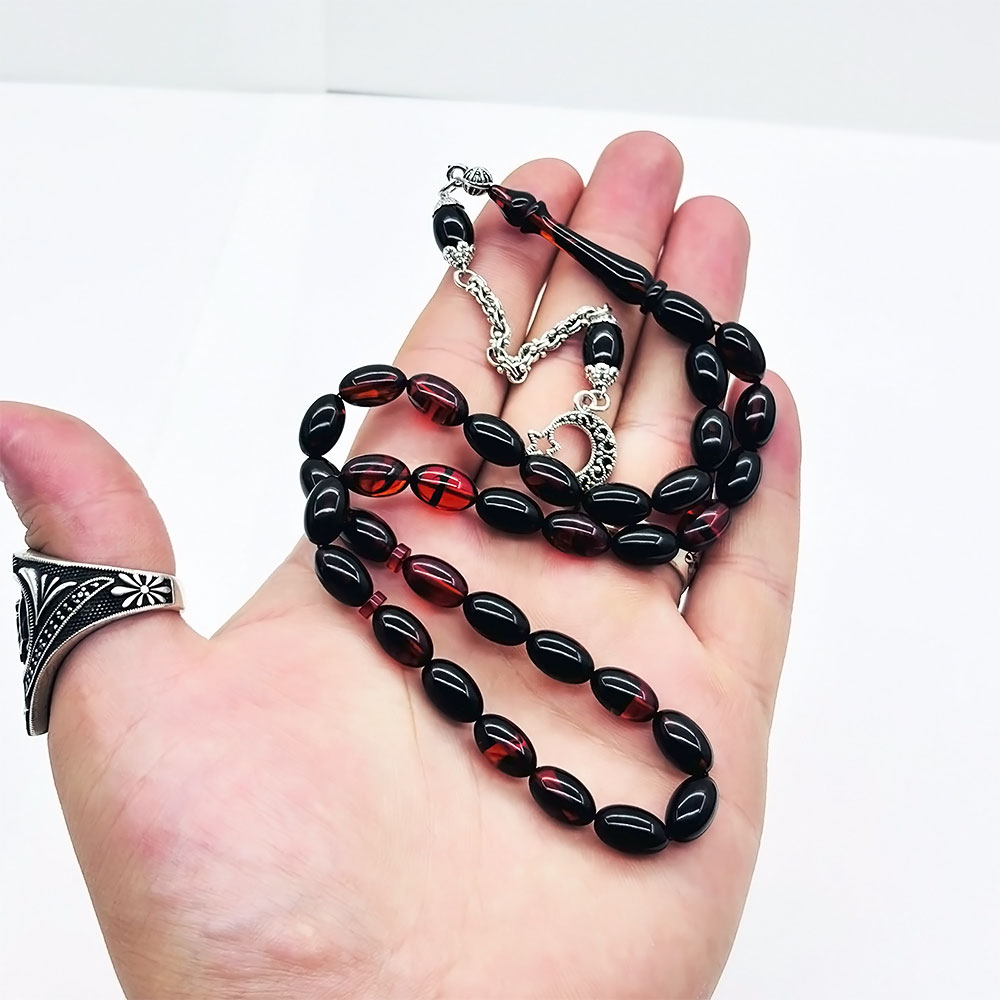 Beyzi Model Parlement Mavisi Ateş Kehribar Tesbih (7 x 11 mm)