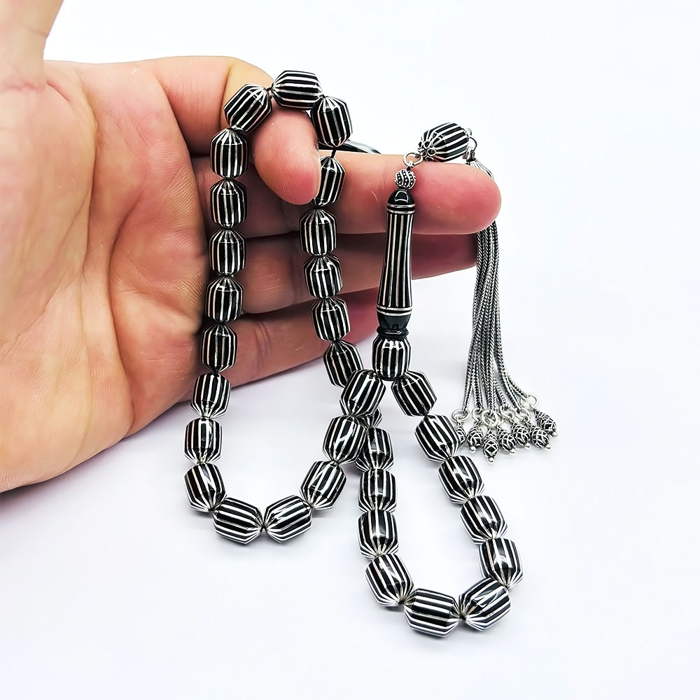 Özel kadife kutusu ve özellikleri belirtilen tesbih |