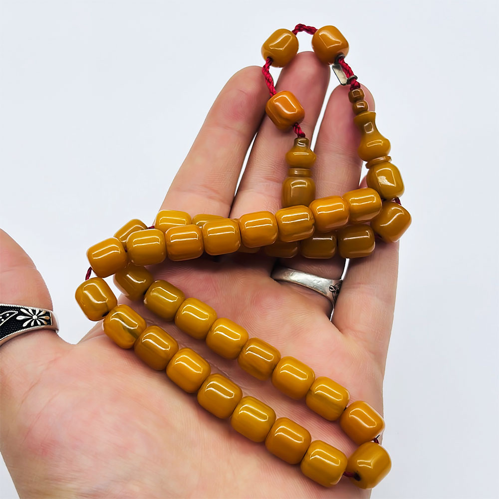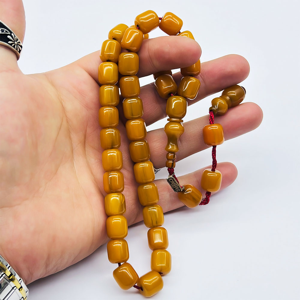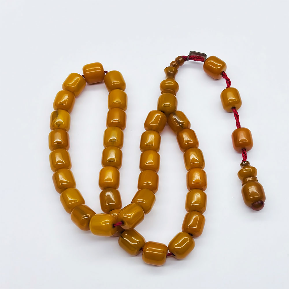 Mat Sarı Renkte Sıkma Ateş Kehribar Tesbih