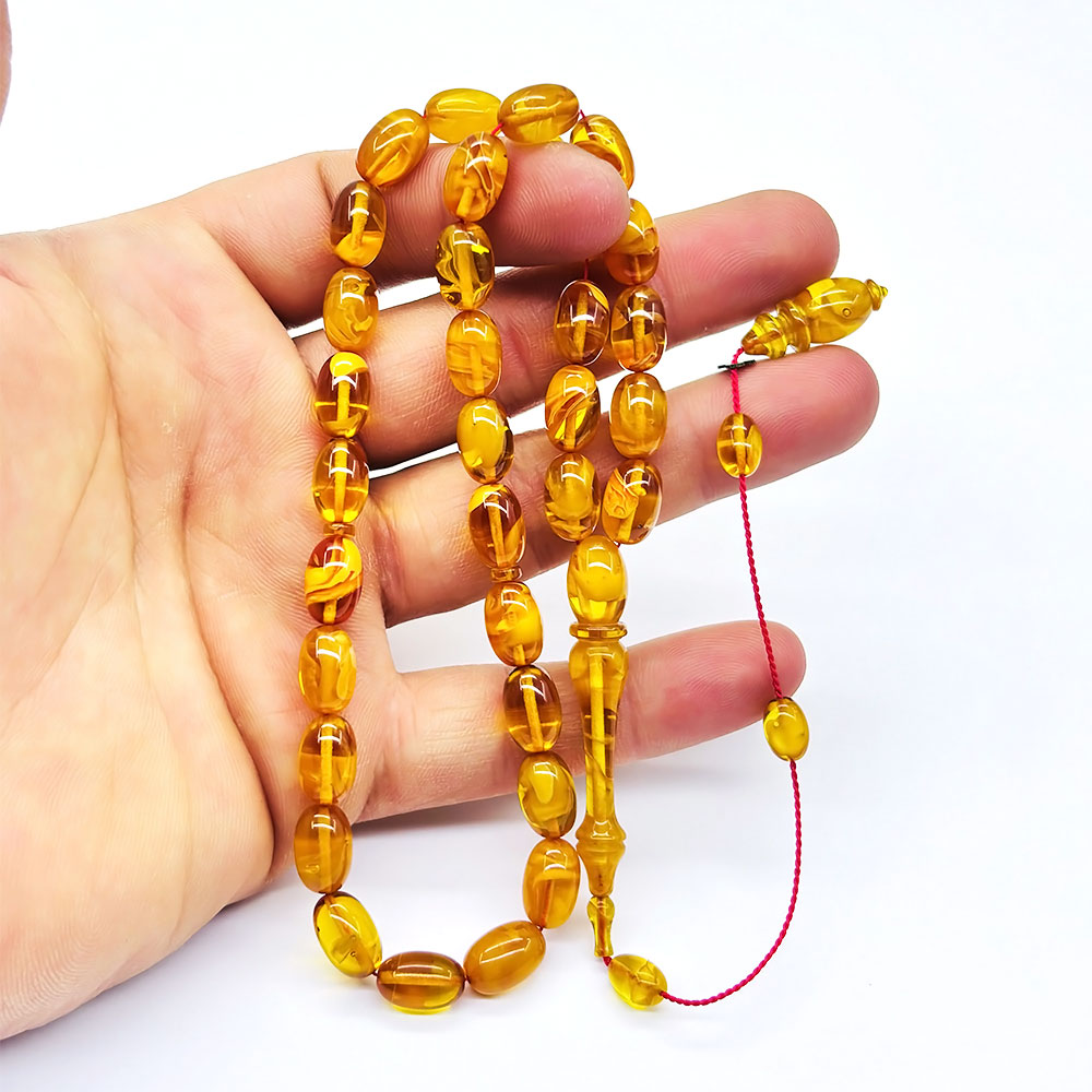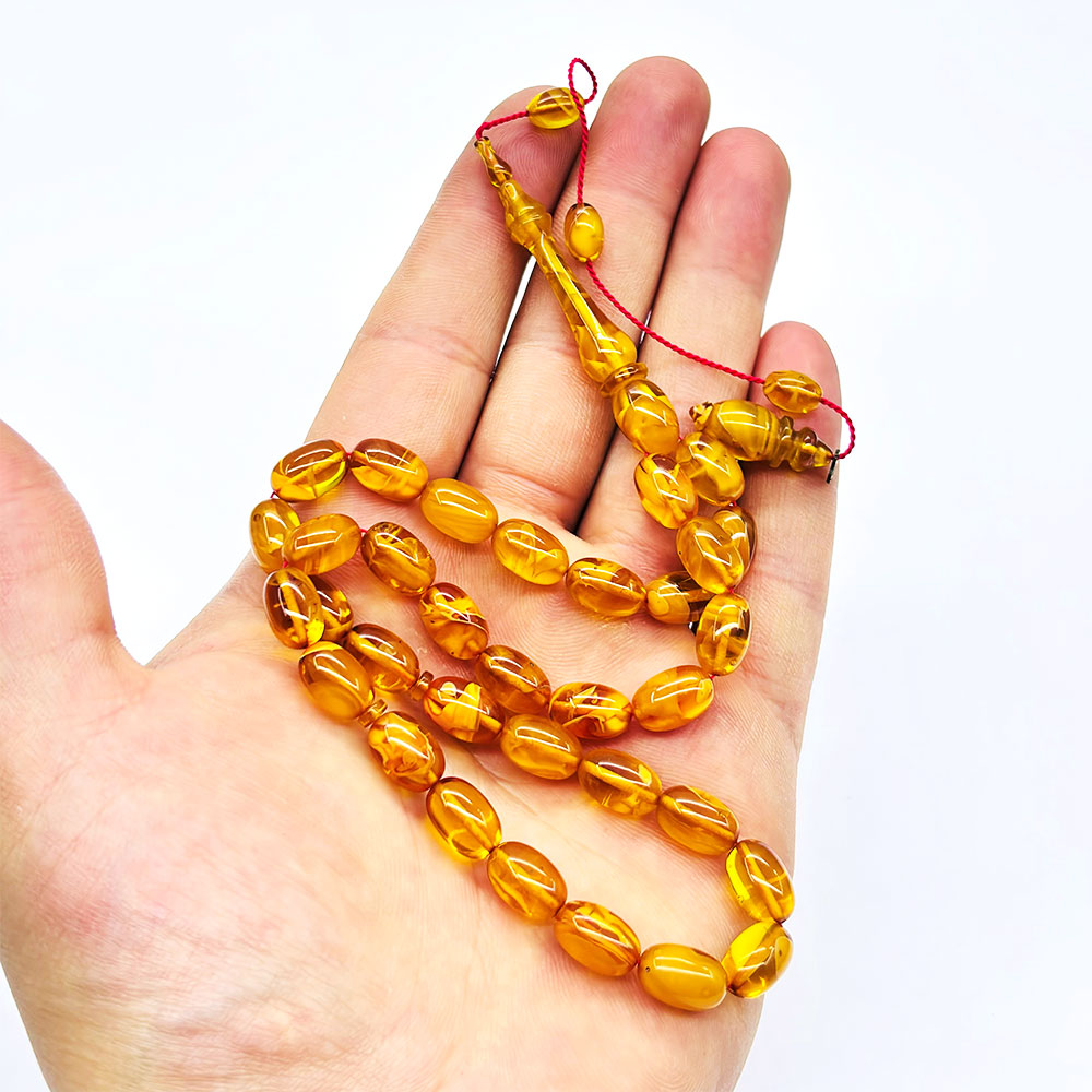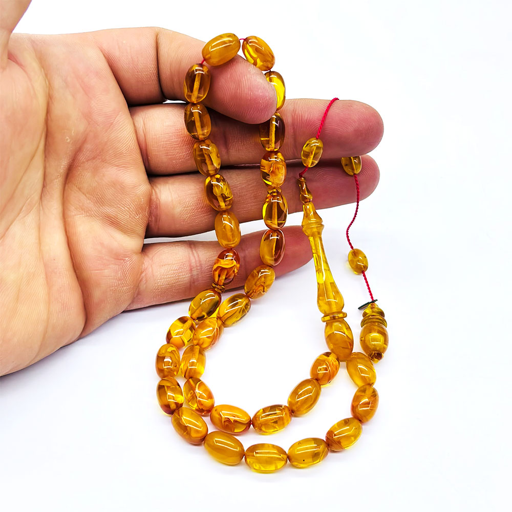 Usta İşçilikli Sarı Hareli Sıkma Ateş Kehribar Tesbih