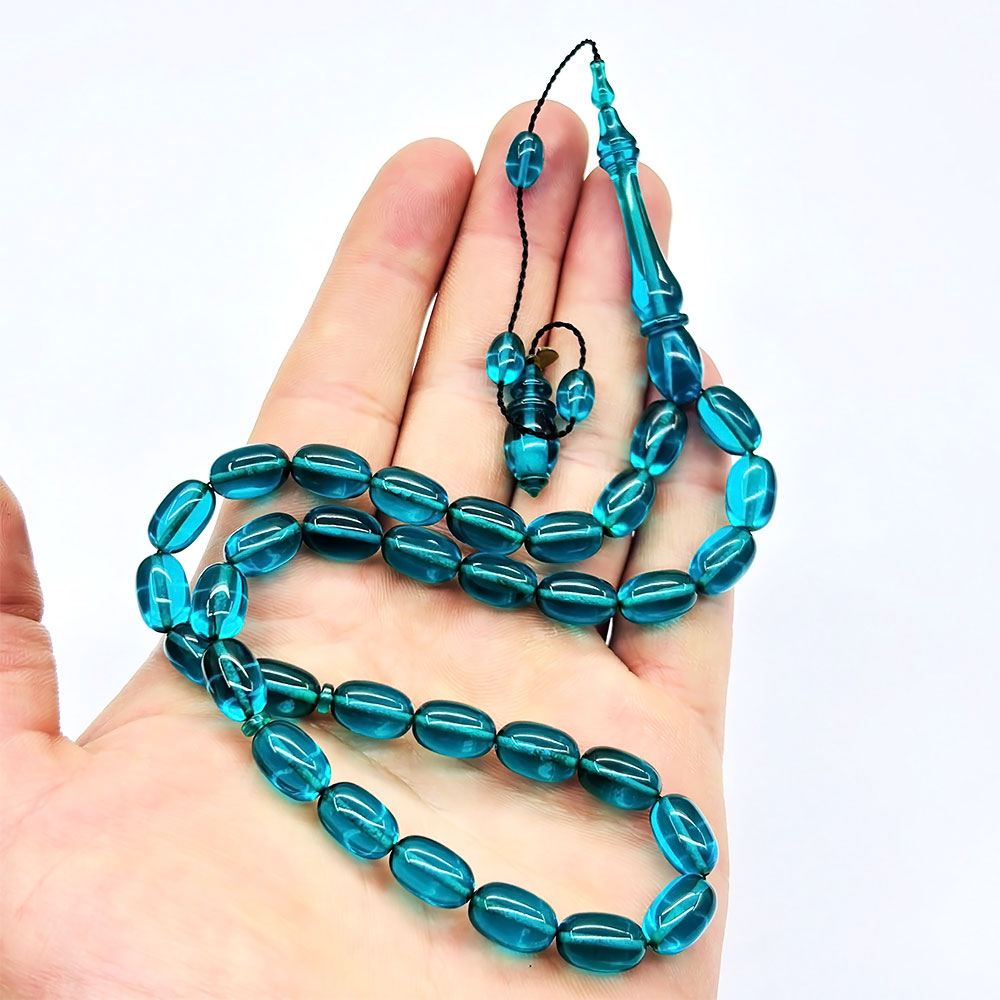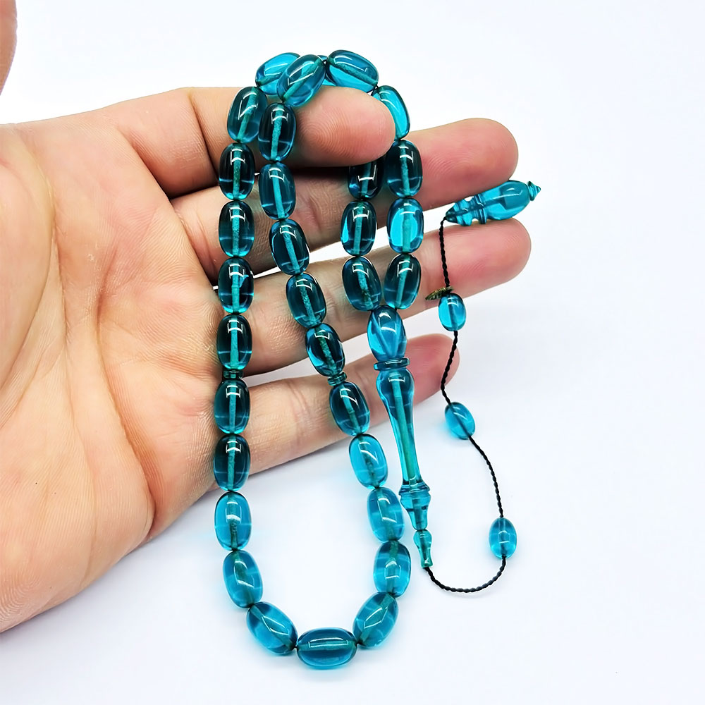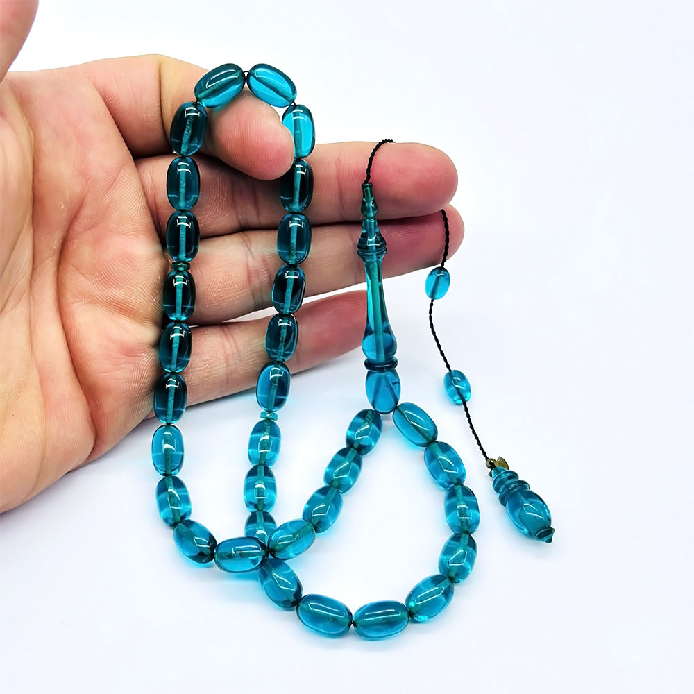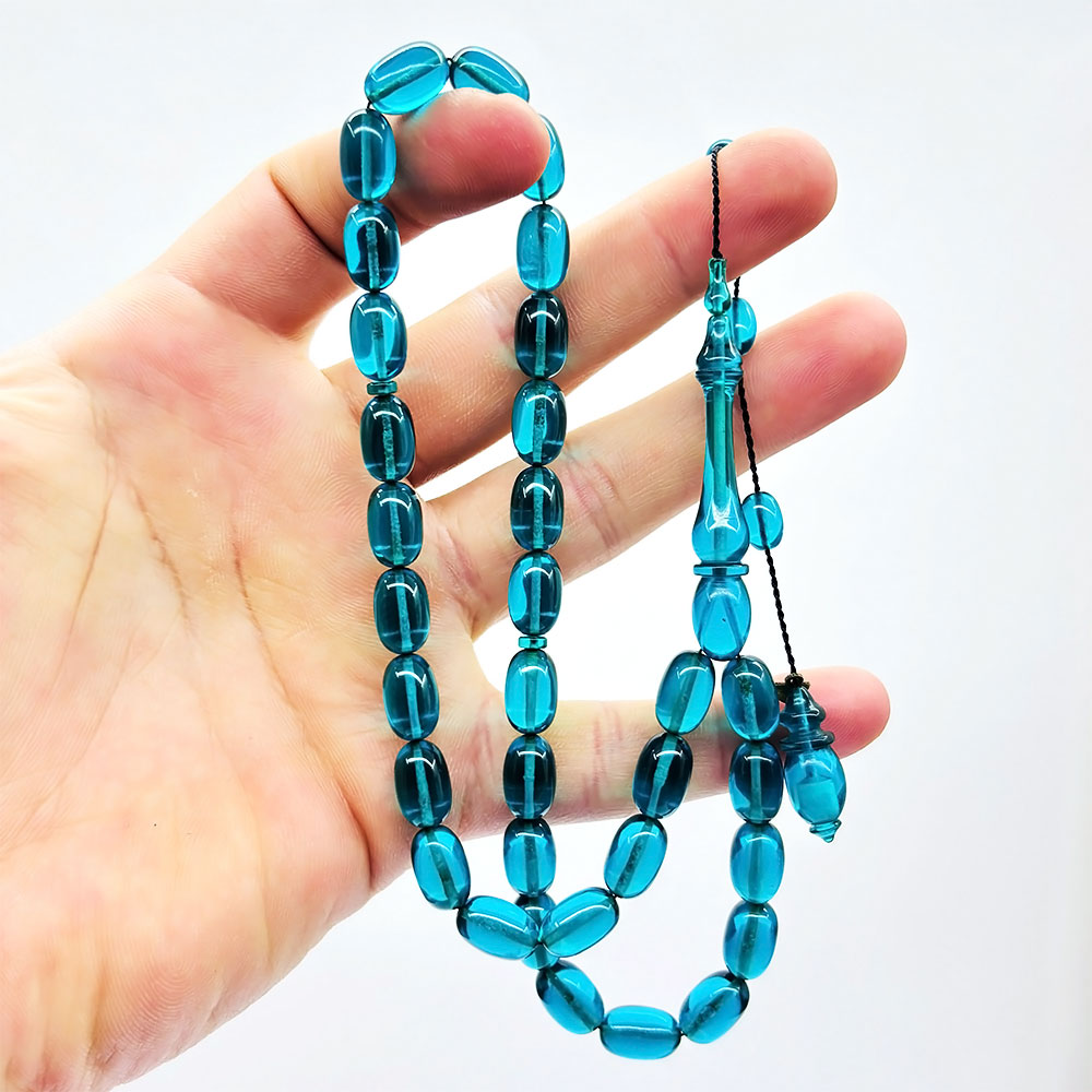 Usta İşi Petrol Mavisi Sıkma Ateş Kehribar Tesbih