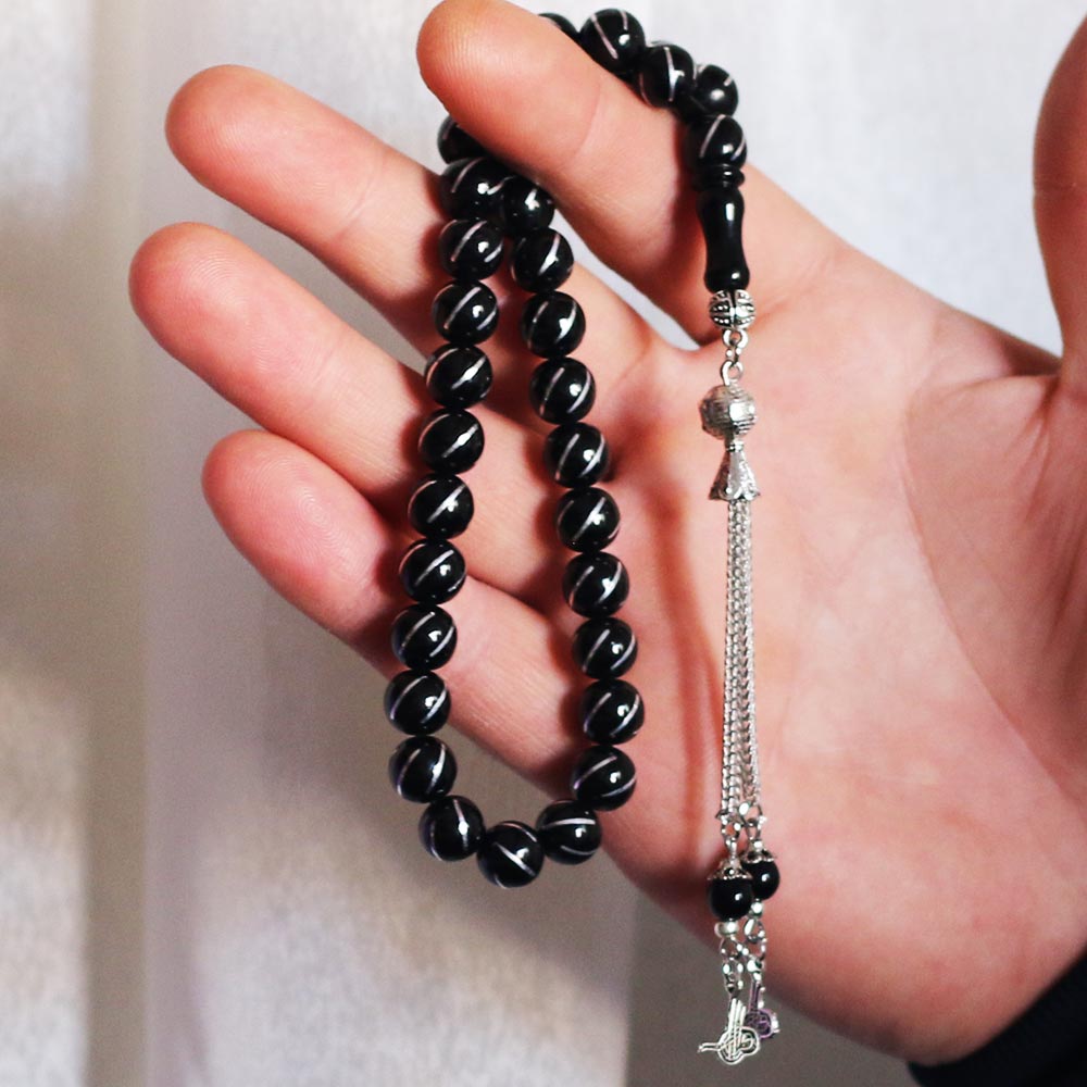 Özel karton kutusu ve özellikleri belirtilen tesbih |