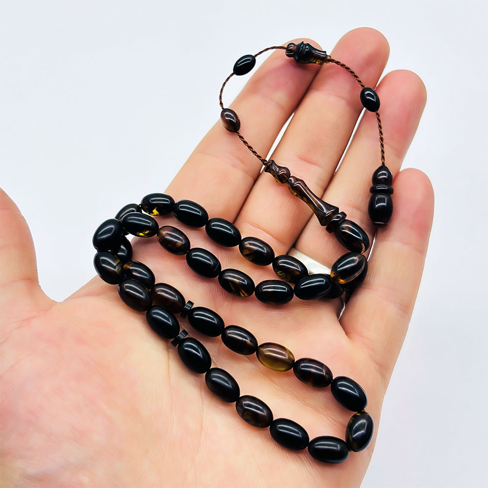 Beyzi Model Parlement Mavisi Ateş Kehribar Tesbih (7 x 11 mm)