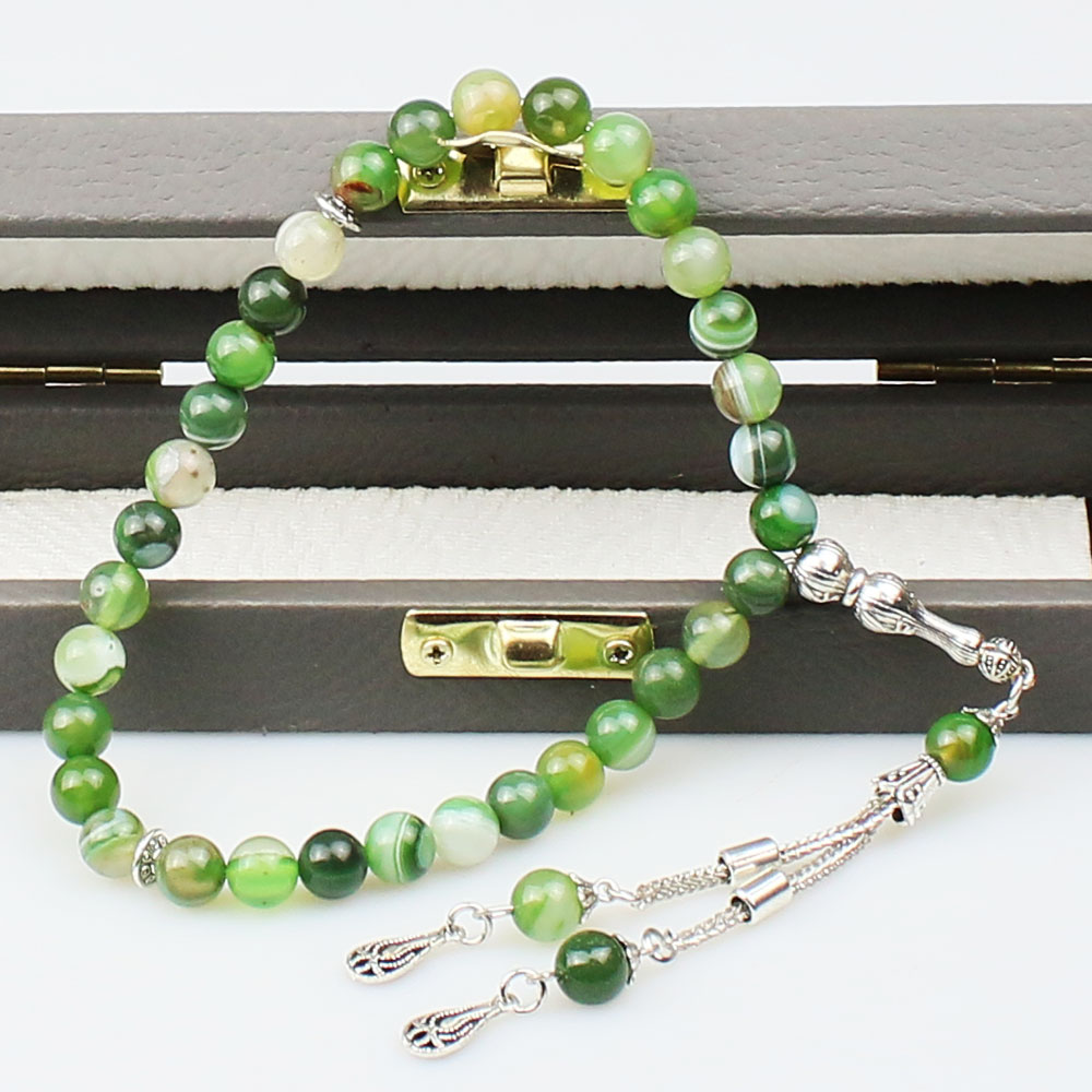 Özel karton kutusu ve özellikleri belirtilen tesbih |