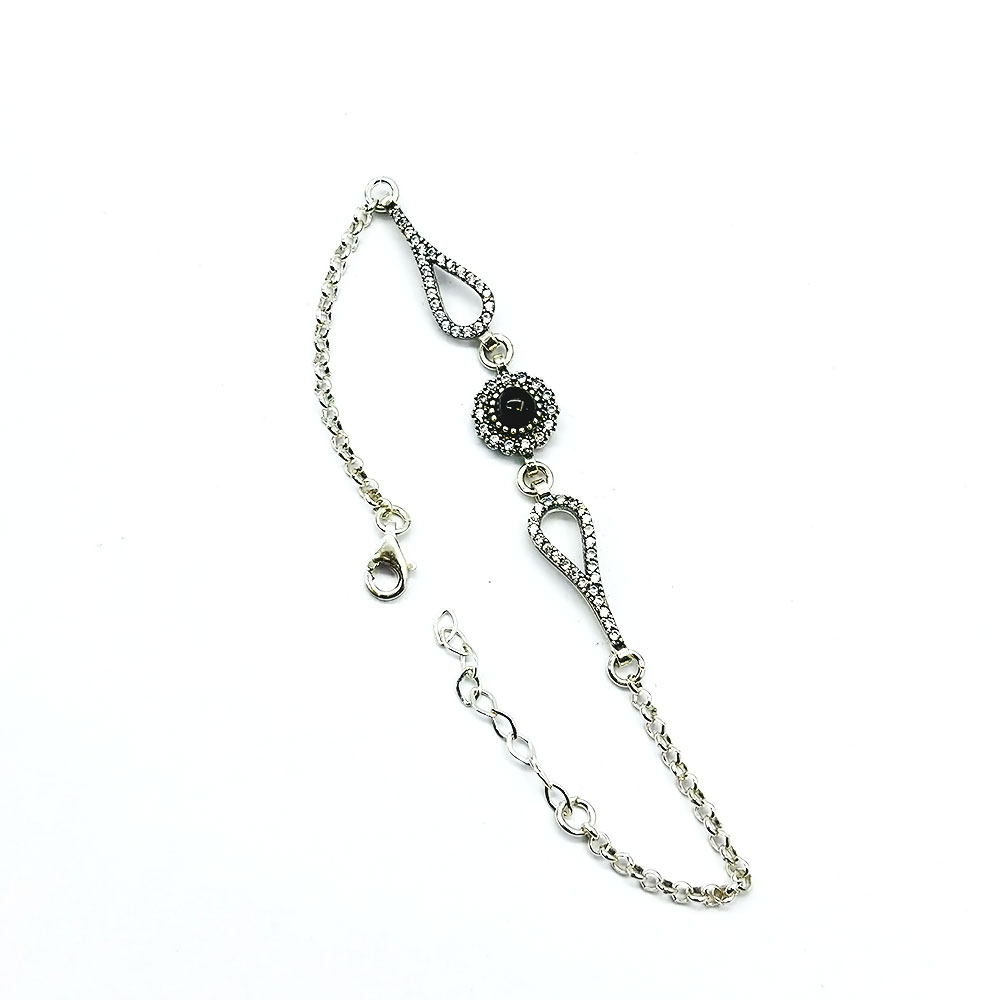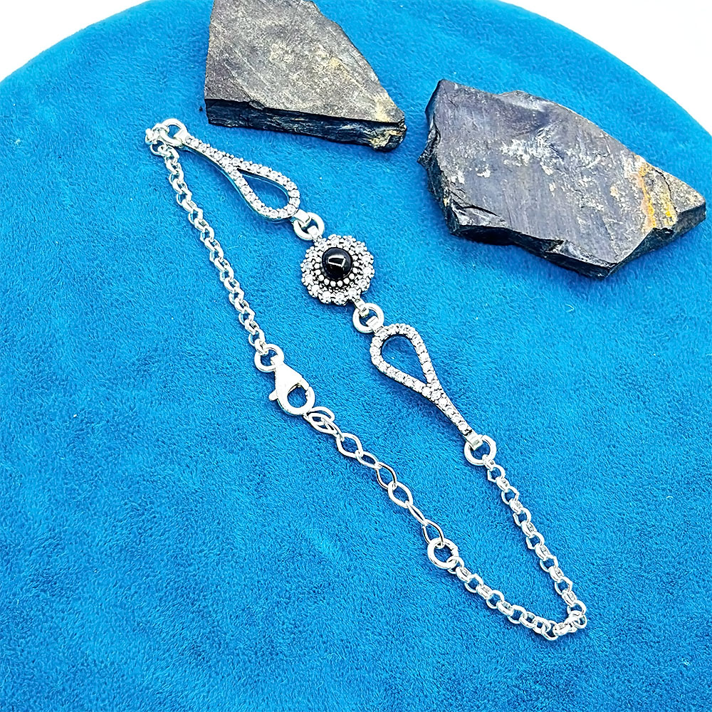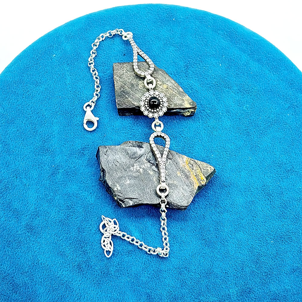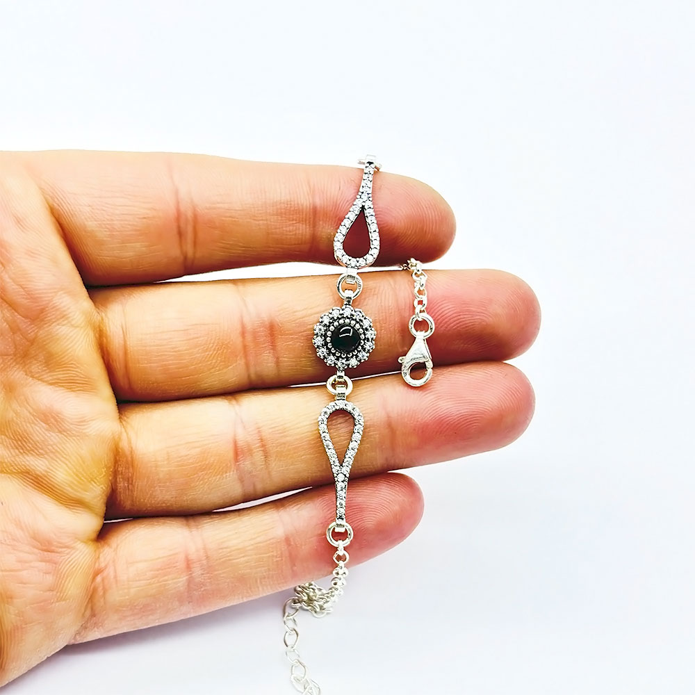 Yuvarlak Model Zirkon ve Oltu Taşı İşçilikli 925 Ayar Gümüş Bileklik