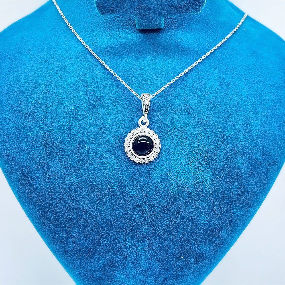 Özel karton kutusu ve özellikleri belirtilen kolye |